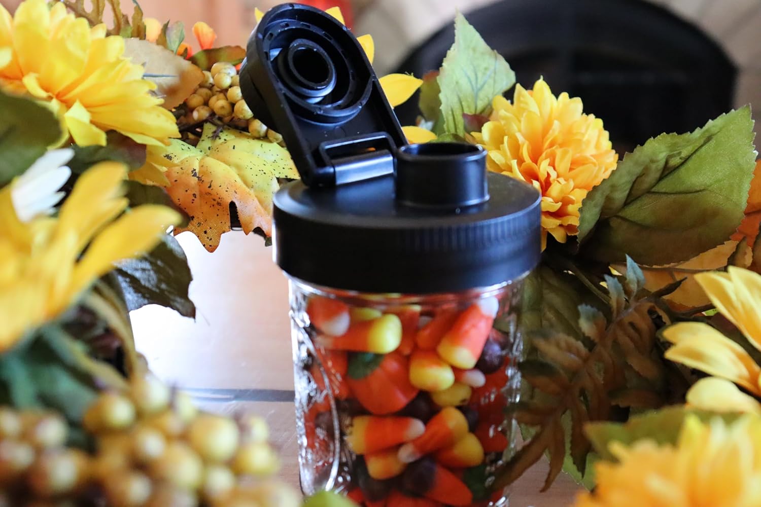 Brewing America Creamer Jar with Pouring Lid, 1 Pint (16 oz) Mason Jar with Black Wide Mouth Pour Lid, for Milk, Sugar, and Cream, 1-Pack (Black)