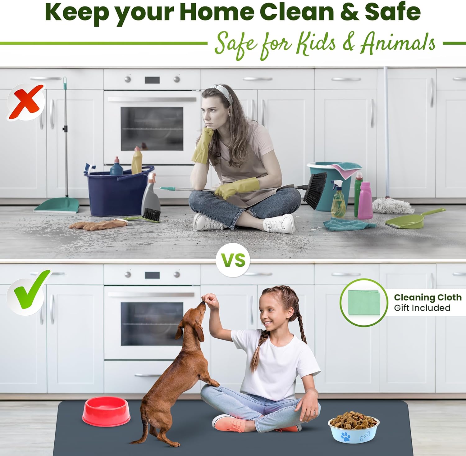 Large Silicone Mat 28" x 20" Mat Thick Heat Resistant, Kitchen Counter Mat Waterproof - Coffee Machine, Glass Top Stove Cover Countertop Protector for Air Fryer, Baking mat (Grey)