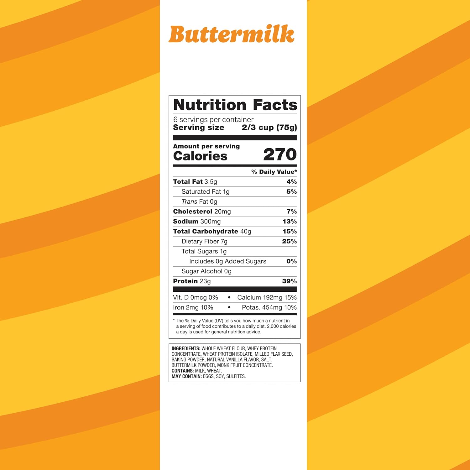 - 💪Stacked High Protein - Each serving of Flourish Buttermilk pancakes contains 23 grams of protein, 7 grams of fiber and zero added sugar! Packed with whey protein and flax seeds, this will give you a high-protein breakfast that tastes great and will help you stay full until lunch. Say goodbye to mid-morning crashes.