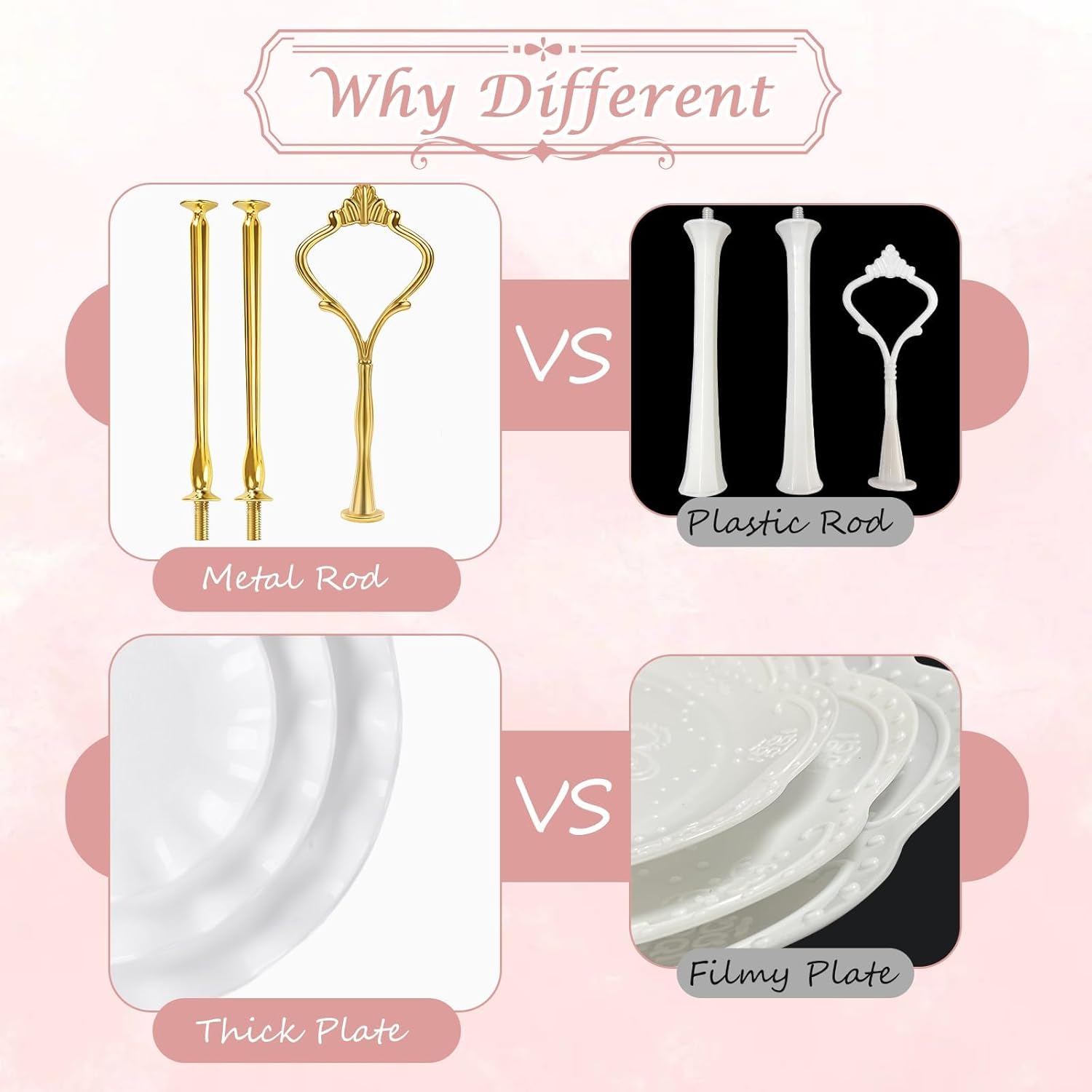 - 【Superior Quality】:This dessert table display set is crafted with thicker food grade plastic plates and reinforced metal rods. It boasts a stylish and durable construction in excellent workmanship that will impress your guests
