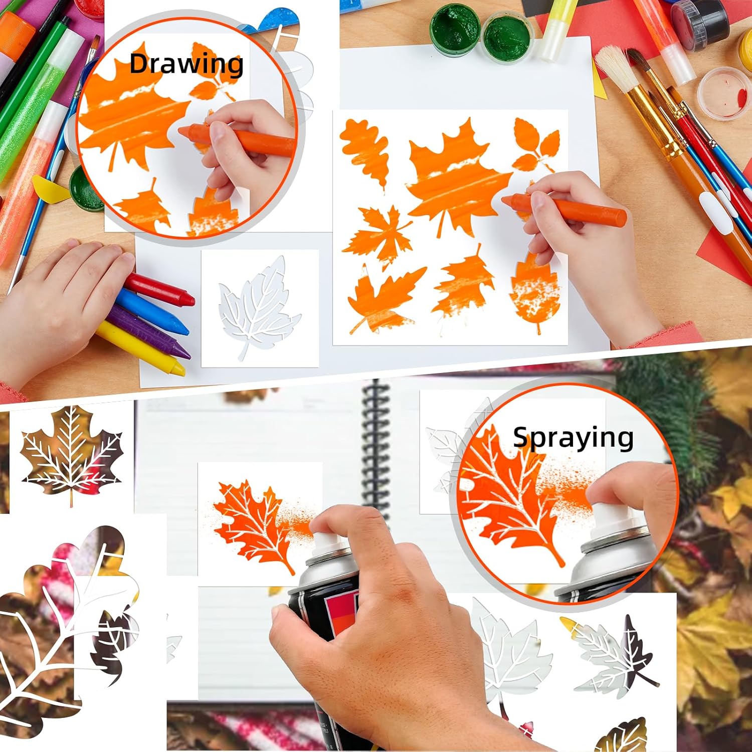 - 【Happy DIY Time】The leaf stencils are suitable for various diy projects, such as wood signs, painting crafts, home decoration, etc. You can use acrylic paints to create beautiful chalk drawings, natural air paint, floors, walls, tiles, wood tables, cabinets, pillows, blank canvases, gift bags and more.