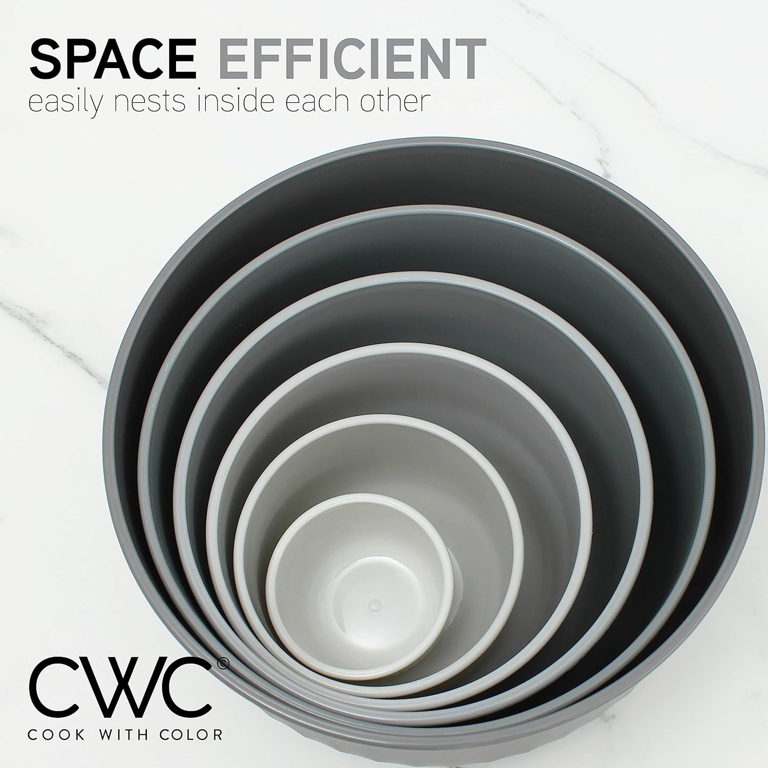 COOK WITH COLOR Prep Bowls with Lids- Wide and Deep Nesting Plastic Small Mixing Bowl Set with Lids, 12 Piece Set - Wide Bowls, Gray