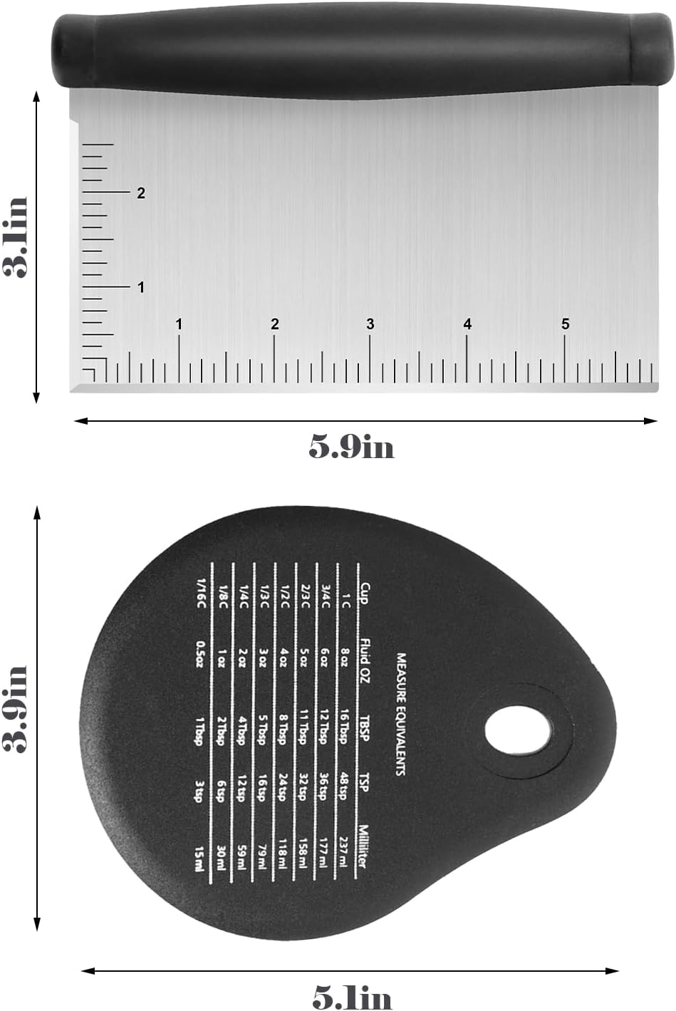 Stainless Steel Dough Scraper & Chopper - 6 Inch Multi-Purpose Kitchen Tools with Measuring Markings, Cutter for Dough, Cake,Griddle Scraper,Bench Scraper and Extra Bowl Shaped Scraper