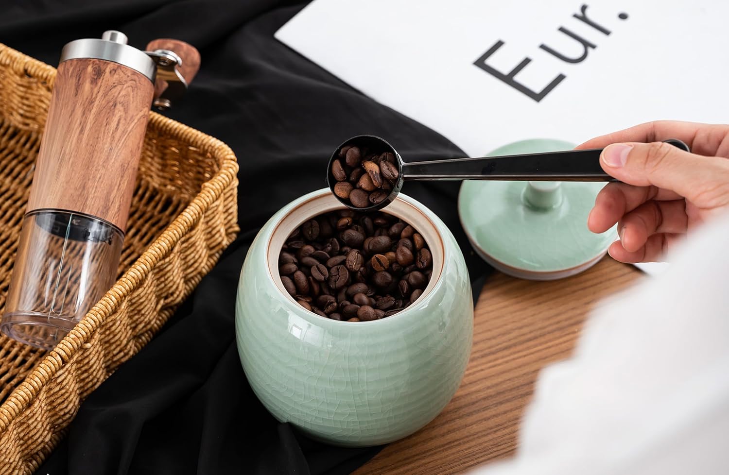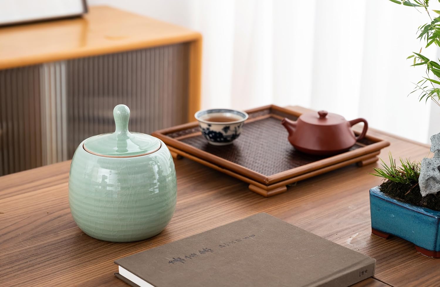 Kitchen Canisters Vintage Ceramic Food Storage Jar with Airtight Lid for Tea, Coffee, Herb, Sugar, Spice, Nuts (Green(ICE))