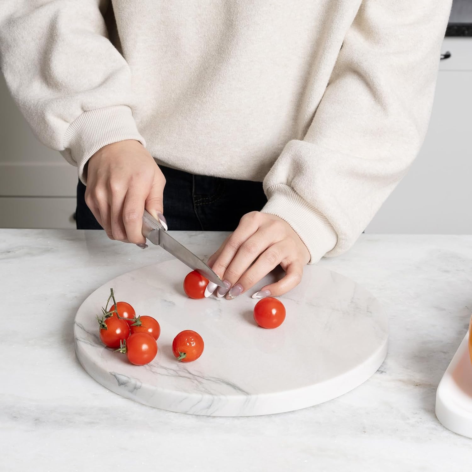 Koville Brazilian Natural Marble Cutting Board for Kitchen, 11inch Round Hand Crafted Marble Slab for Cheese, Charcuterie, Pastry Board - Wedding Gift, House Warming Gift(White Macaubas)