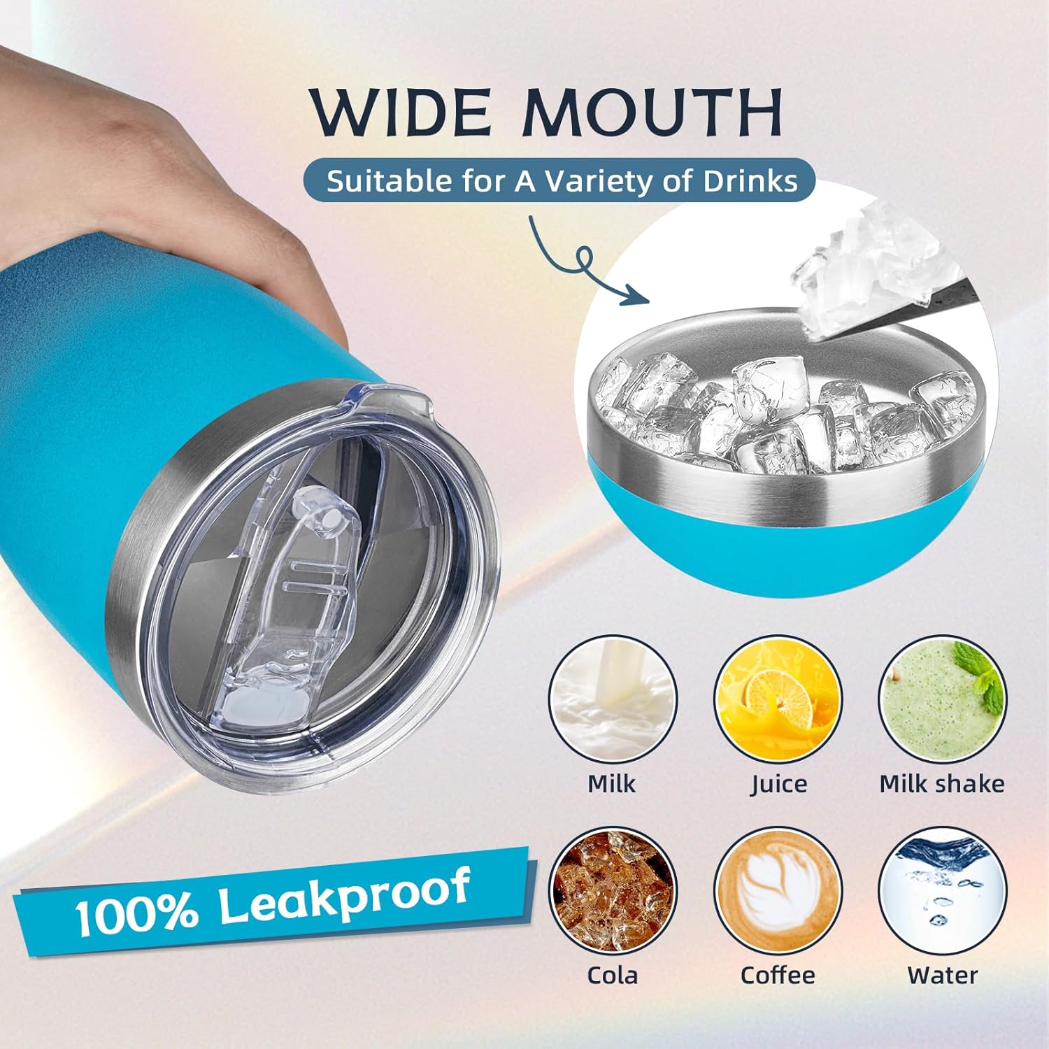 - 🥤【Packing List】: 20oz insulated coffee tumbler with leak-proof lid, two stainless steel straws (one curved and one straight), straw cleaning brush is a great addition (HAND WASH RECOMMENDED). Best for home, office, camping, vacation, sports, travel, etc