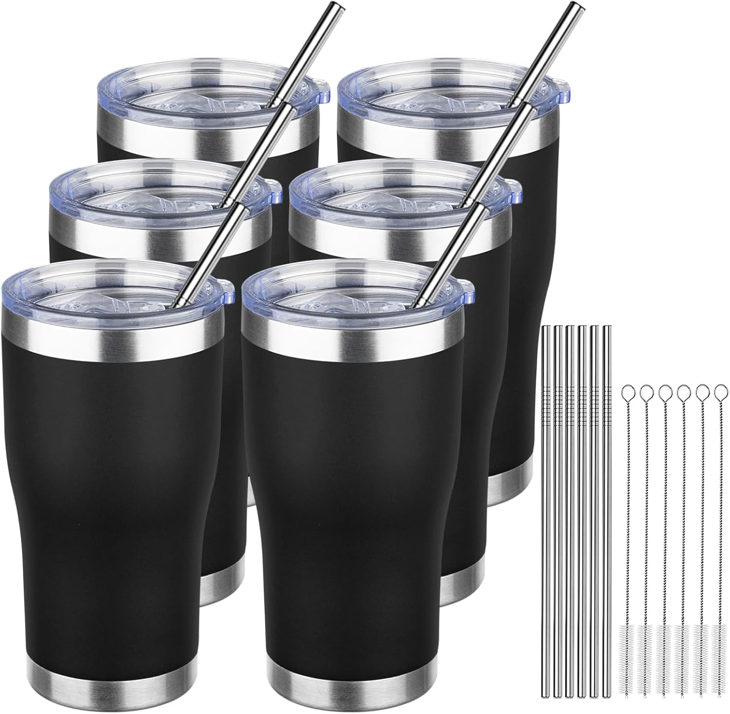 • 🥤【Packing List】: 20oz insulated coffee tumbler with leak-proof lid, two stainless steel straws (one curved and one straight), straw cleaning brush is a great addition (HAND WASH RECOMMENDED). Best for home, office, camping, vacation, sports, travel, etc