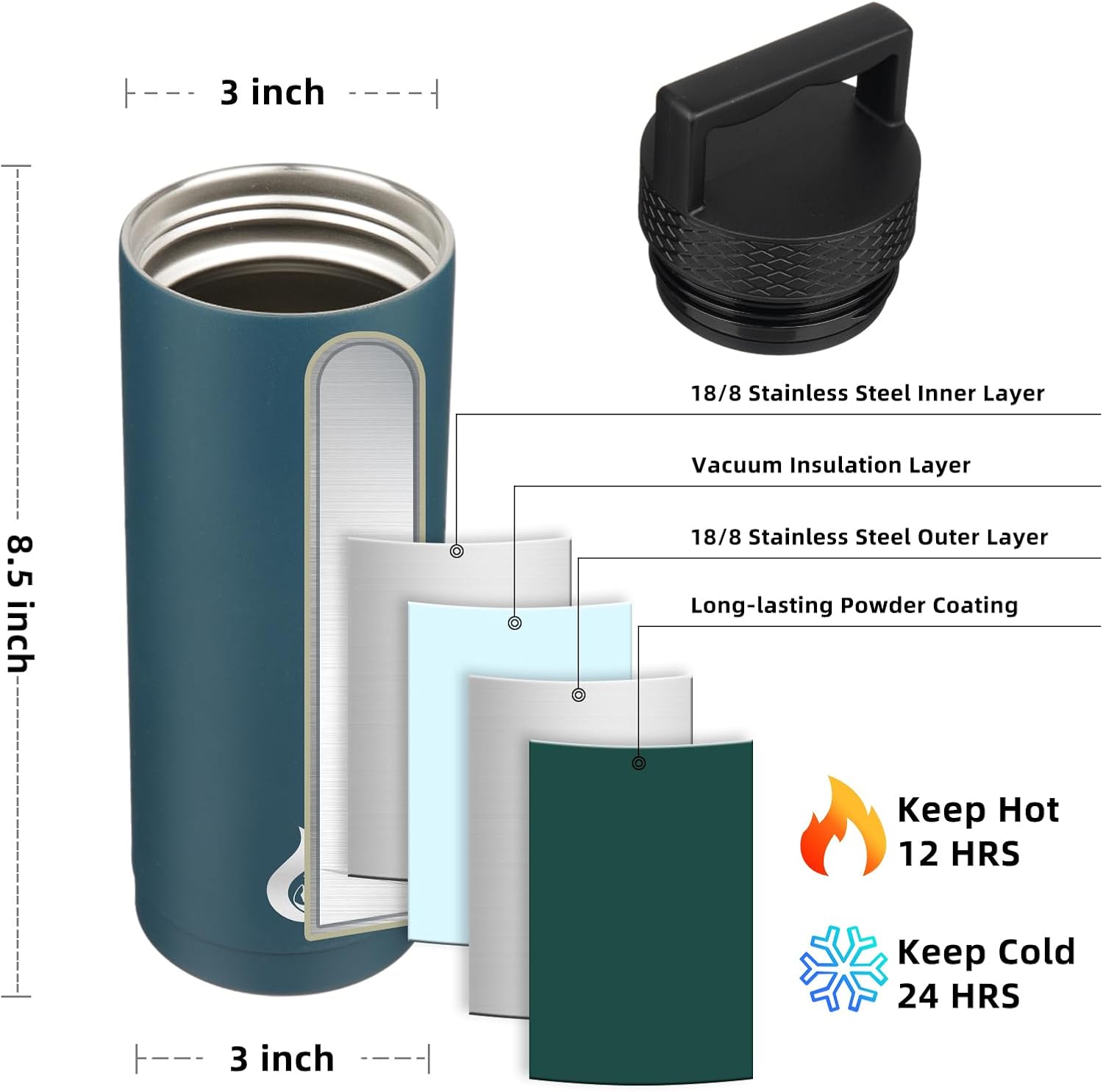 - INSULATED WATER BOTTLE: BJPKPK insulated water bottle use double-walled vacuum insulation technology to keep your water cold for up to 24 hours, or hot for up to 12 hours, make sure you enjoy your favorite beverages at the most suitable temperature all day