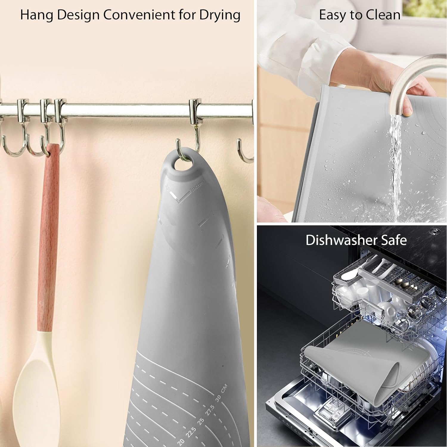 - NON-STICKY SURFACE AND ANTI-SLIP BOTTOM: Using silicone pastry mat make baking is more easy and convenient.You will enjoy the best NON-STICK baking pad. Even if grease or dough sticks to the surface, pastry mat can be easily cleaned up.This non-slip baking mat can realize complete adhesion,strongly adhesive to the countertop,won't slip and slide around.