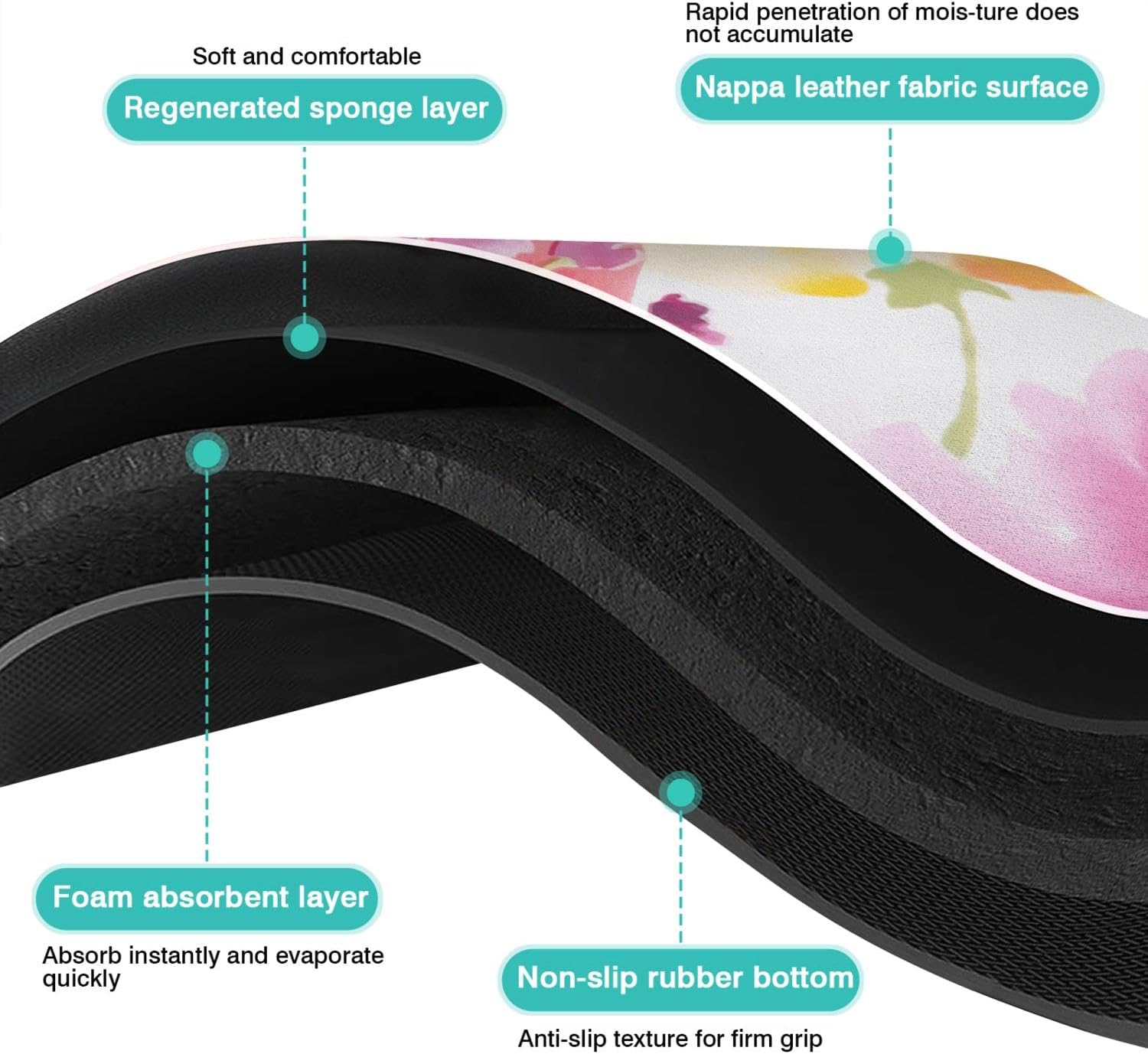 Dish Drying Mat, 16x18in, Watercolor Flower, Rubber Backed, Absorbent, Quick Dry, Fit Kitchen Counter, Bar, Under Sink, Dishes, Utensils, Dish Rack