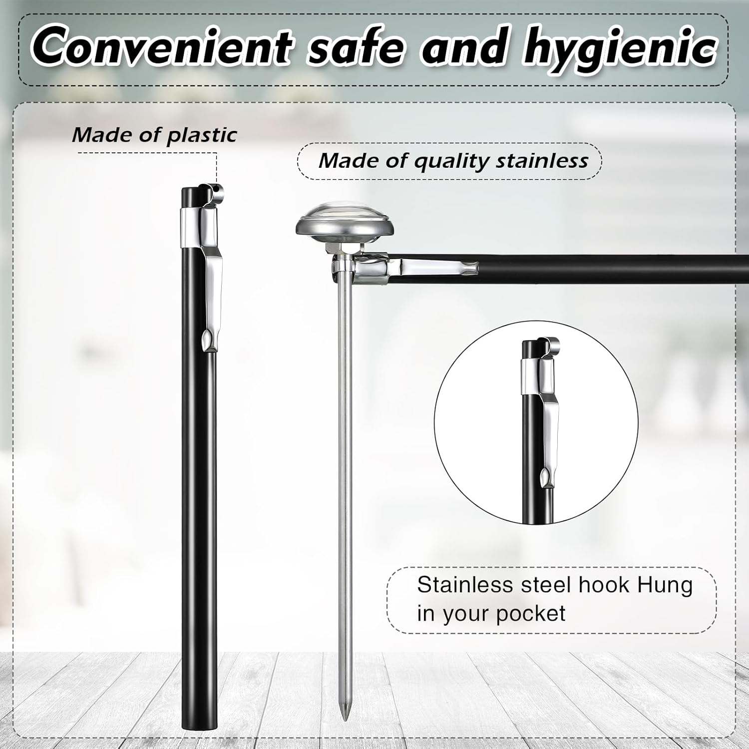 - Long Lasting and Quality: our cooking thermometer is made of stainless steel material with a plastic sleeve, reliable and long lasting, heat resistant and sturdy, not easy to break or rust, safe and quality, lightweight and portable, you can use it for a long time