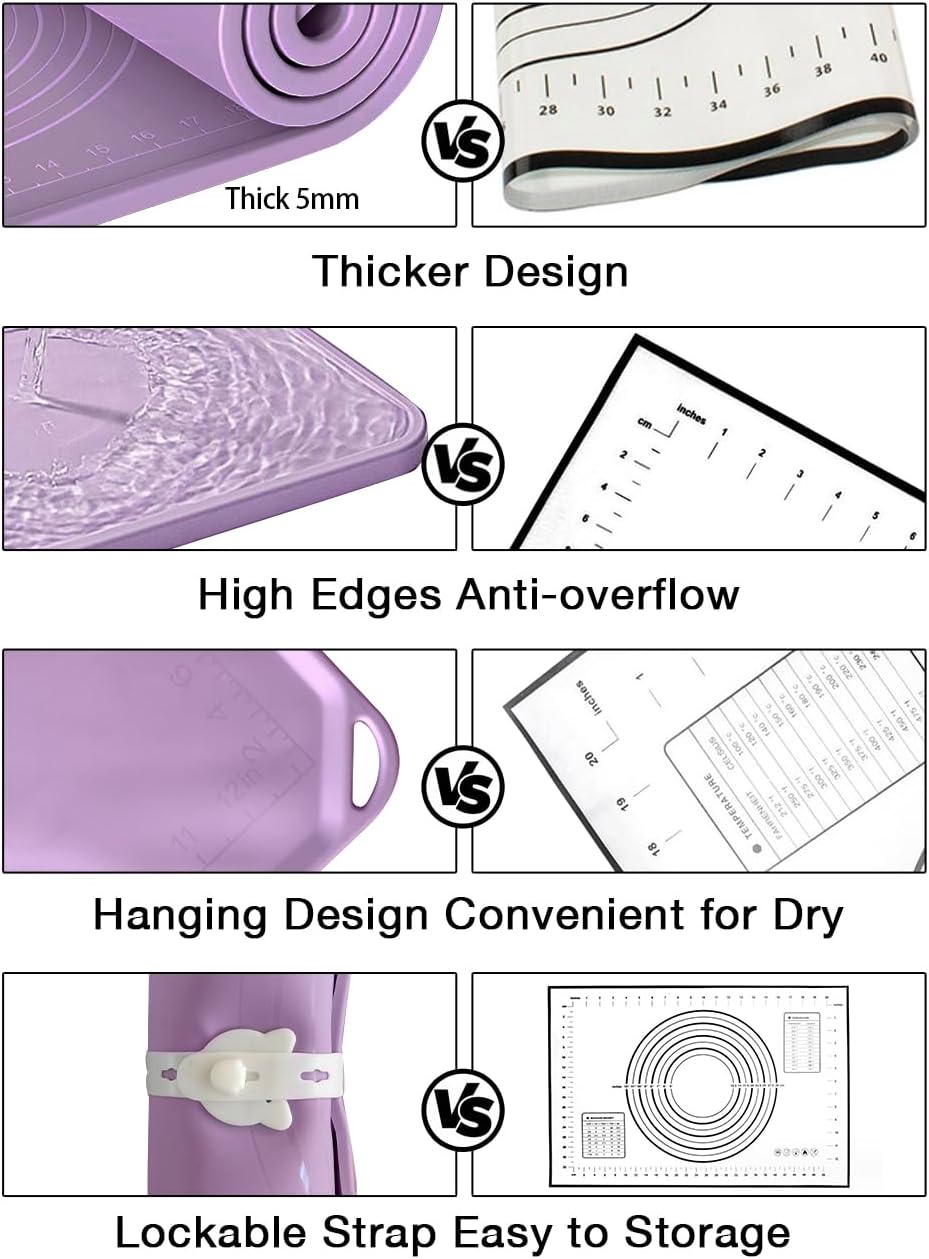 - PREMIUM MATERIAL: QUUZ Silicone Baking Mat is Made of High Quality Food Grade Silicone Material, No Slippage When Kneading and No Stickiness When Rolling, Soft and Comfortable. Won't Lose Its Luster or Fade. It is Durable, can Meet Your Baking Needs for Years.