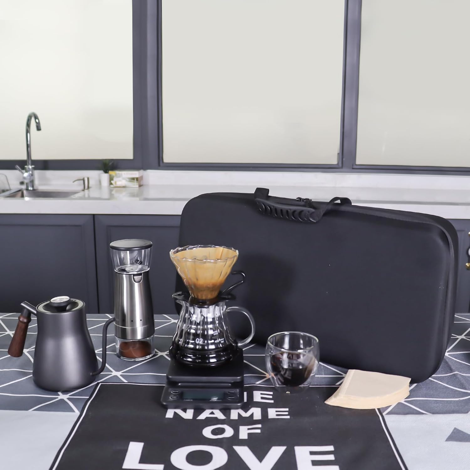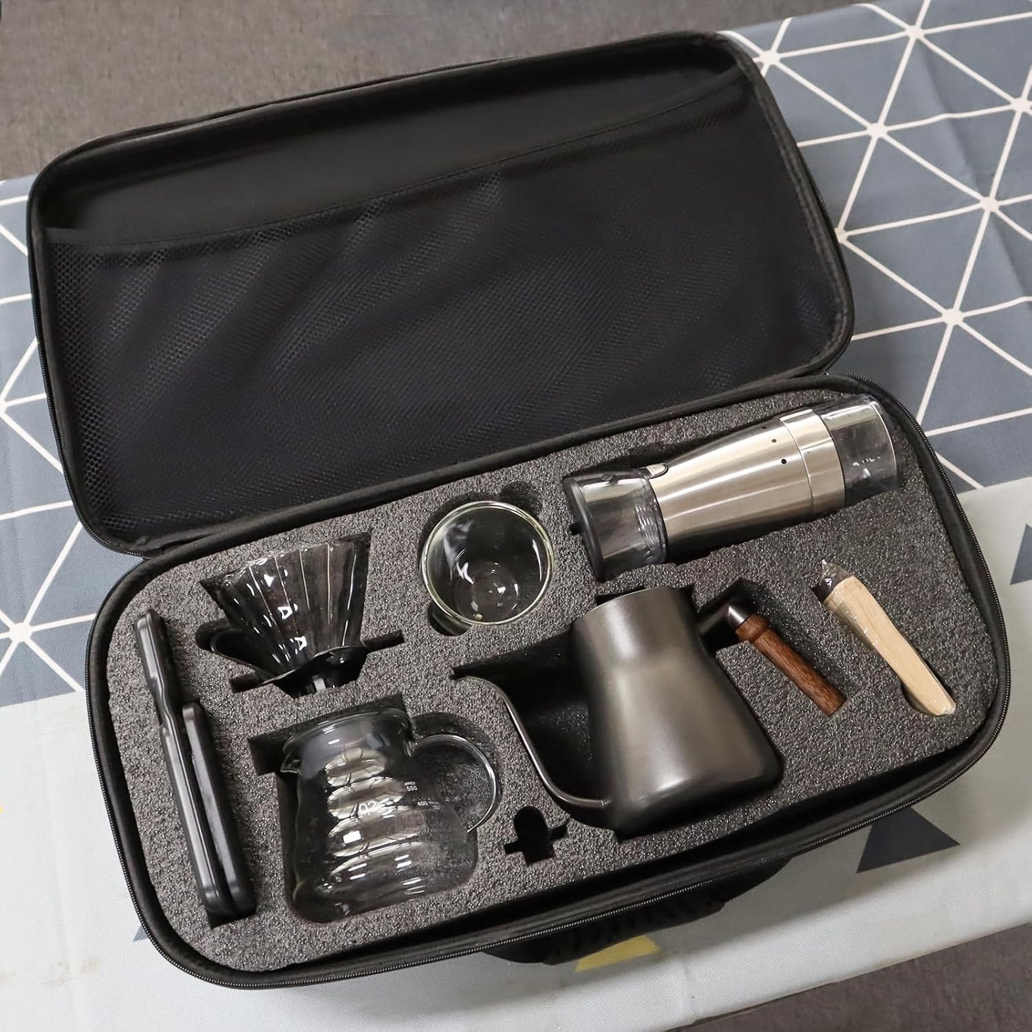 SOTECH Electric Coffee Maker Set with Electric Grinder Glass Dripper Server Steel Kettle Filter Paper Travel Bag for Outdoor Travel BBQ Picnic