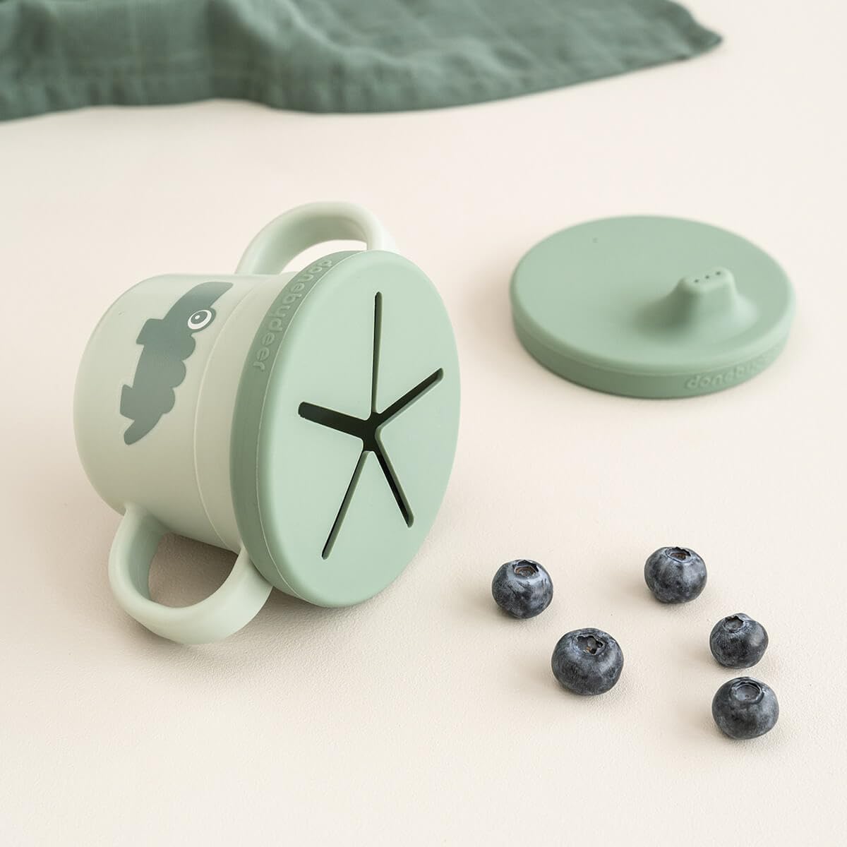 Done by Deer Foodie Spout & Snack Cup Croco Green – Spill-Proof Toddler Cup with Soft Silicone Lid – Durable, Easy to Clean, and Perfect for 6-Month-Olds