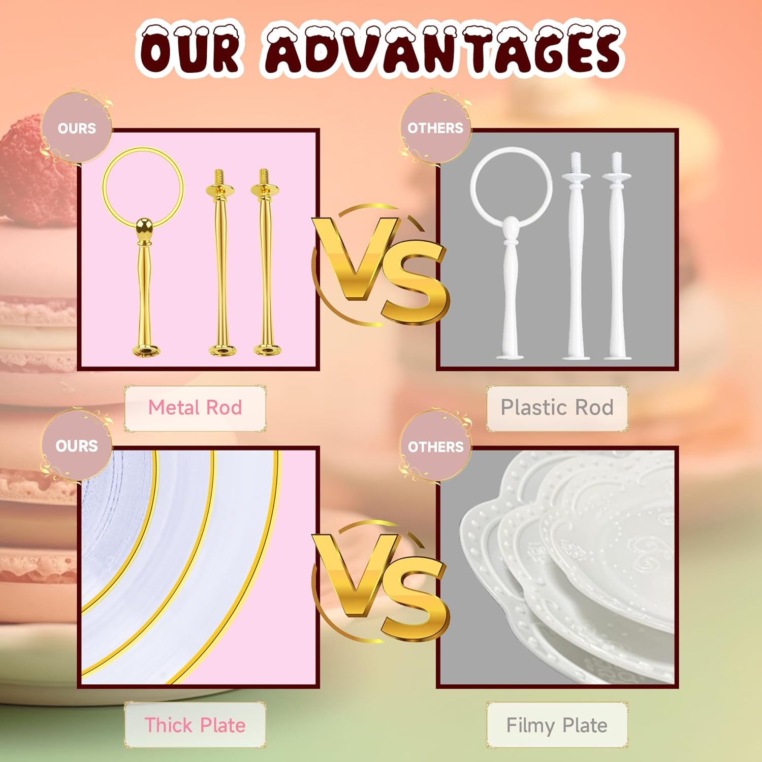 - [Versatile Party Supplies]: Whether you're hosting a themed birthday party, a delightful tea party, a charming baby shower, or a glamorous wedding, this tiered tray stand is perfect centerpiece for any dessert table. Your guests will be delighted as they indulge in the scrumptious treats beautifully displayed on this dessert stand