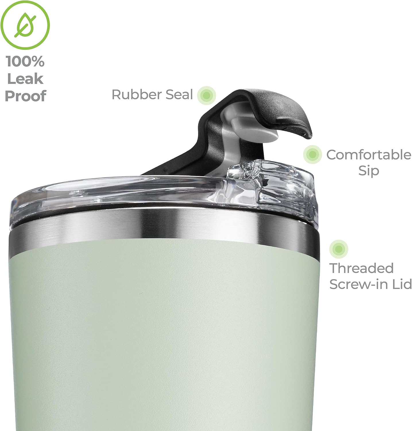 - FLIP TOP LEAK PROOF LID - Our stainless steel tumblers come with a flip top lid and comfortable sip, The flip top lid comes with rubber seal that keeps it totally leak proof to prevent leaks, and drips, and keeps your coffee/tea etc… hot as can be.