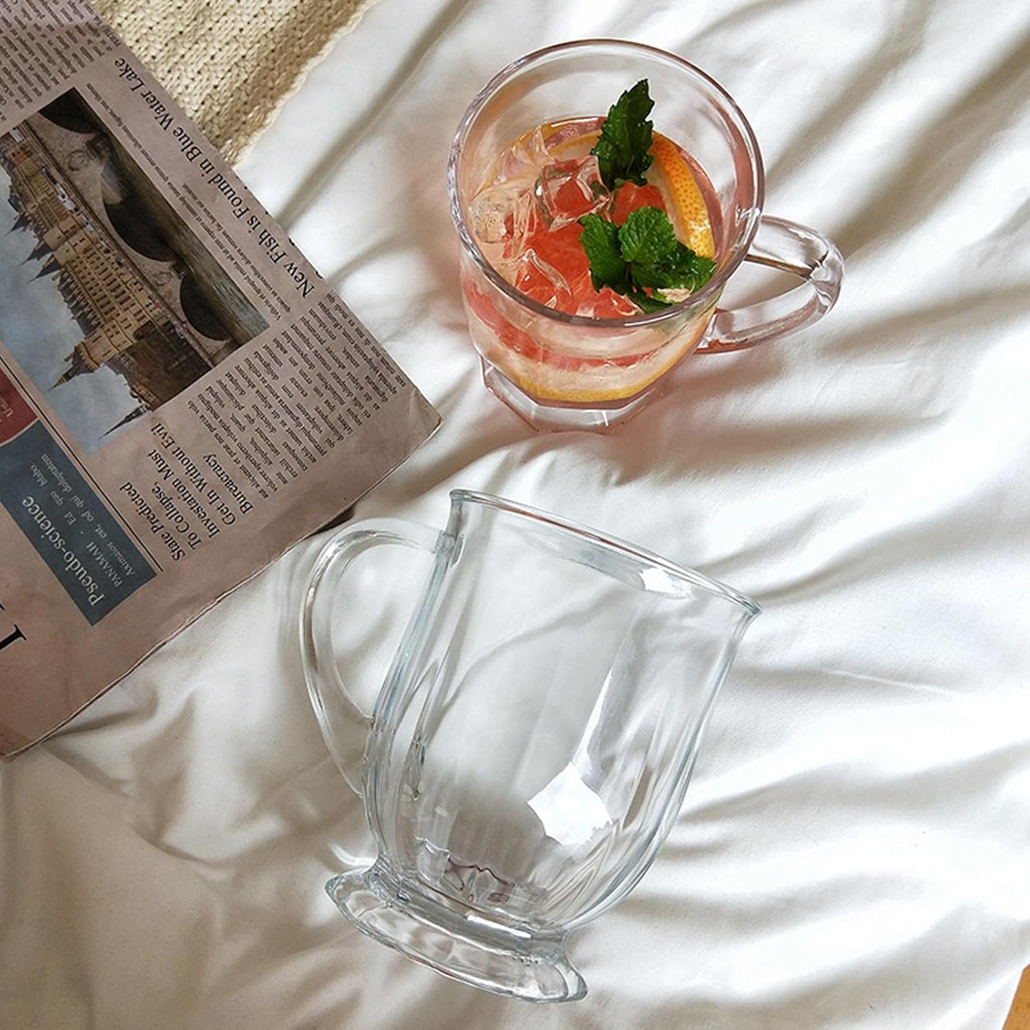 Glass Coffee Mugs Set of 4, 16 OZ Large Clear Glass Beer Cups with Handle,Striped Mug for Hot Beverages,Tea, Cappuccino, Latte, Espresso, Juice Mothers