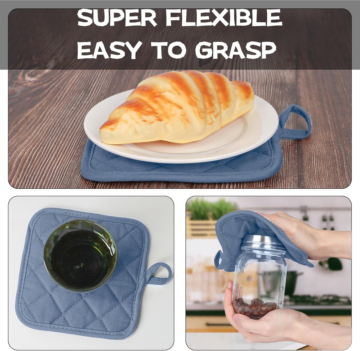- 4 PIECE GREAT VALUE HOUSEHOLD ESSENTIALS PACK: Super value for 4pcs short oven mitts and pot holders, including 2 oven mitts(6.8 x 5.3in) and 2 pot holders (6.6 x 6.6in), perfect for daily use and coordinate well with your house and kitchen.
