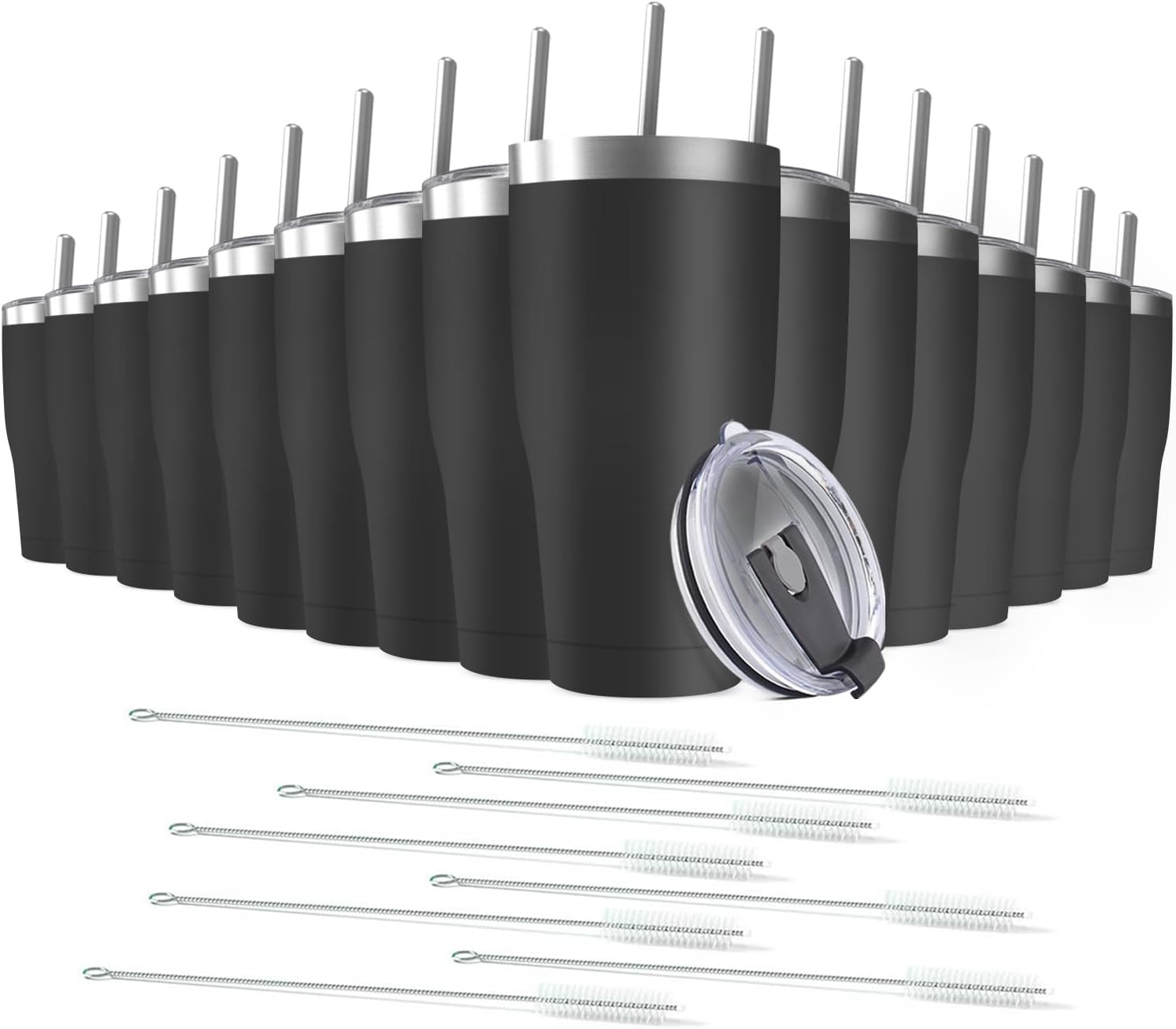 16 Pack 20oz Stainless Steel Tumblers Bulk Reusable Travel Mugs with Lid, Double Wall Powder Coated Coffe Cup for Home, Office, Outdoor Suitable for Vehicle Cup Holders