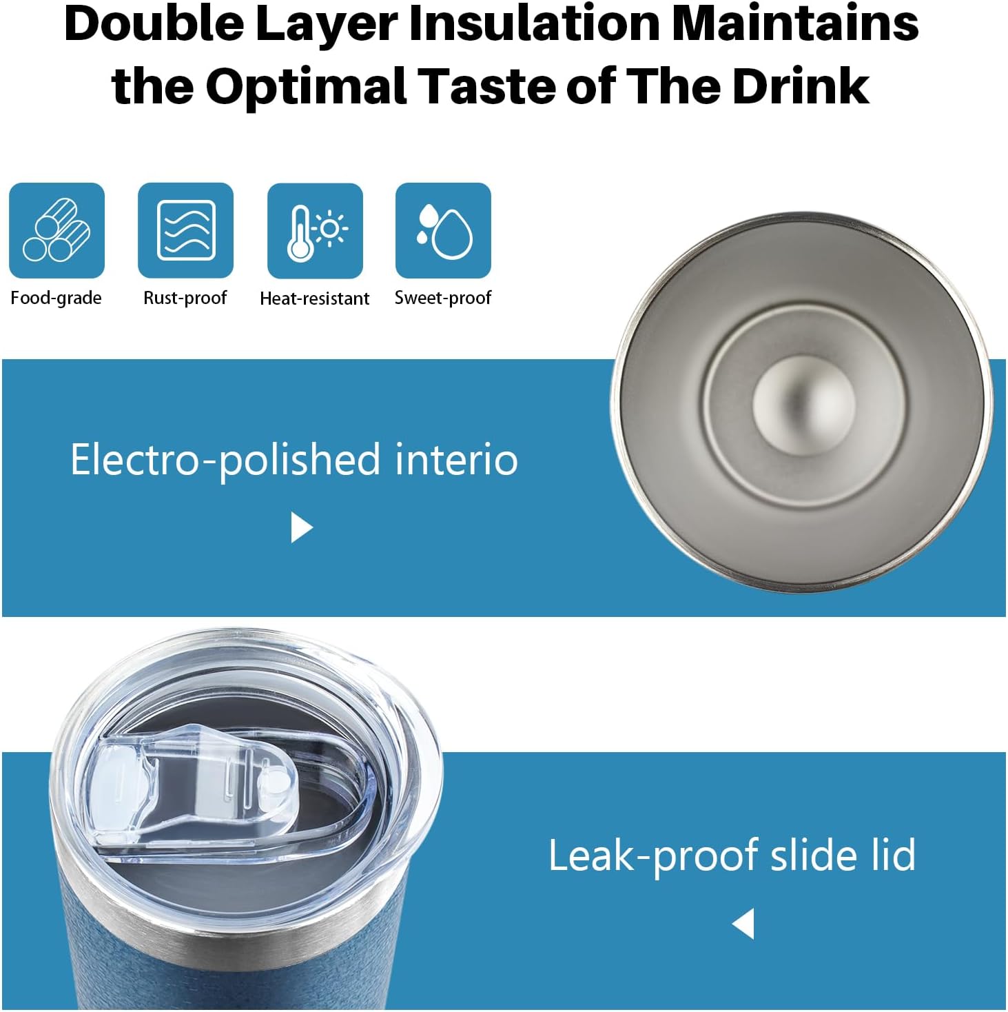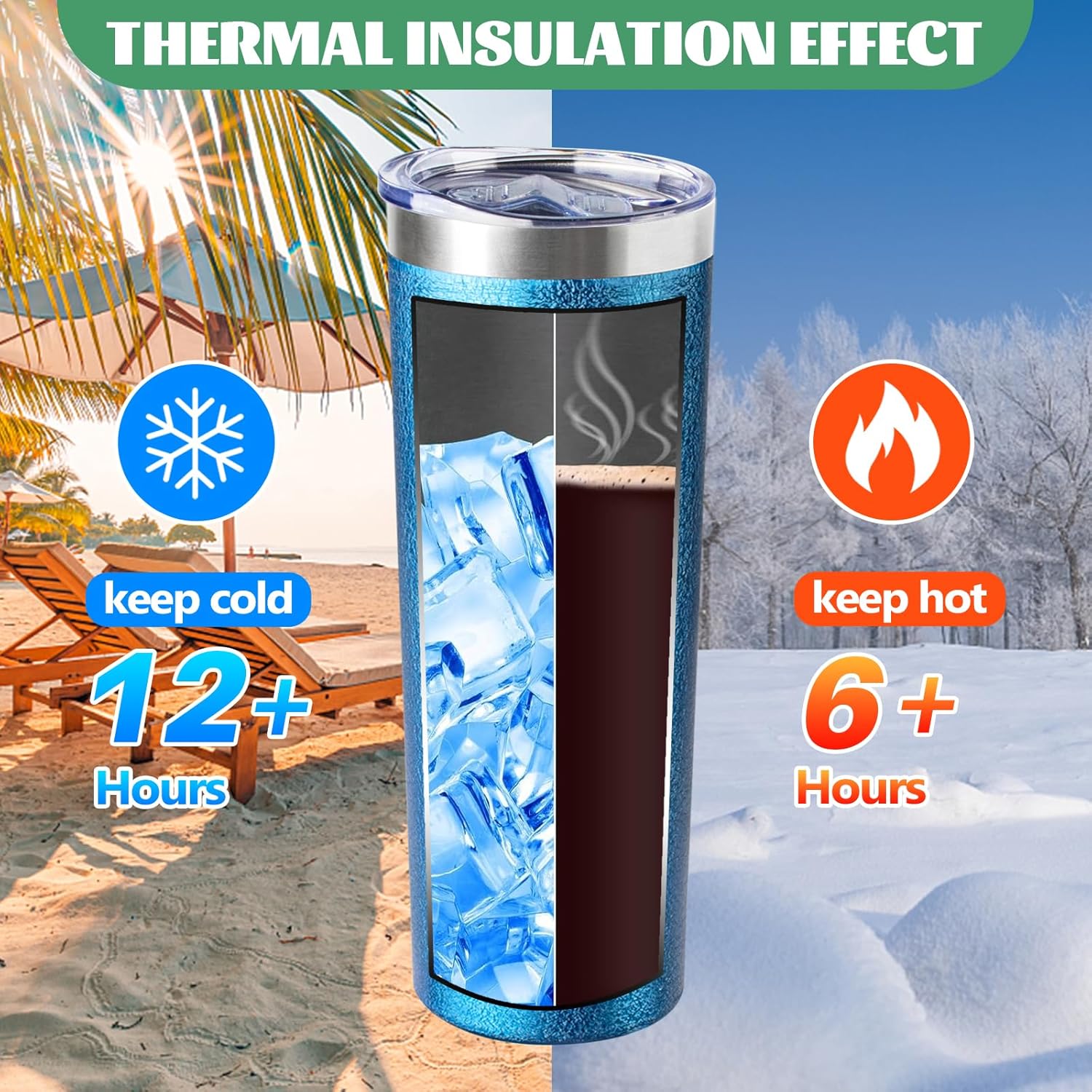 20 oz Skinny Tumbler with Lid and Straw,Stainless Steel Vacuum Insulated Tumbler Double Wall Travel Coffee Mug,Insulated Cup for Coffee, Tea, Beverages,Office (Texture Blue,1)