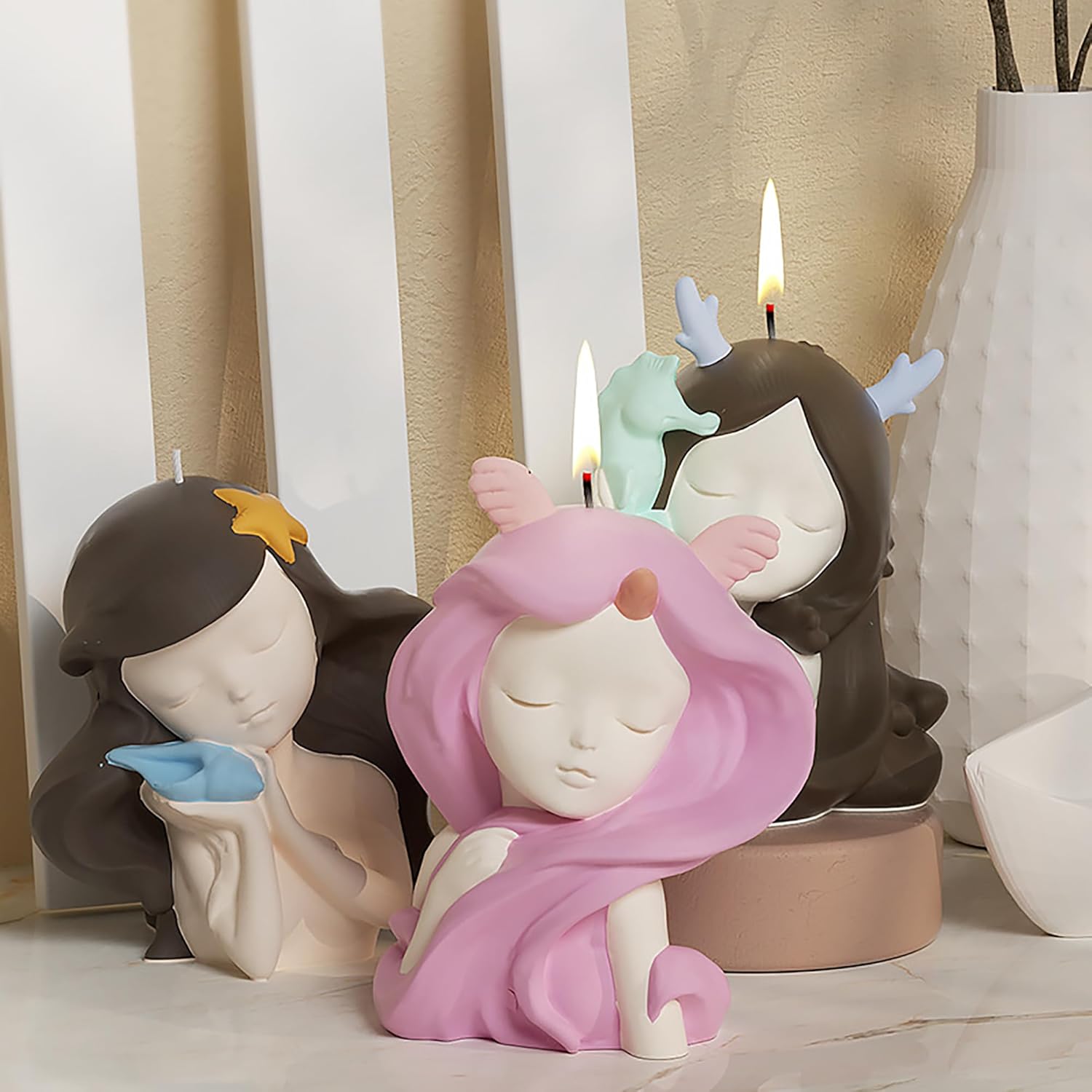 3 Pack Sleep Beauty Candle Mold - Resin Casting Silicone Molds for Home Decor & Candle Making Wave Spiral Mold