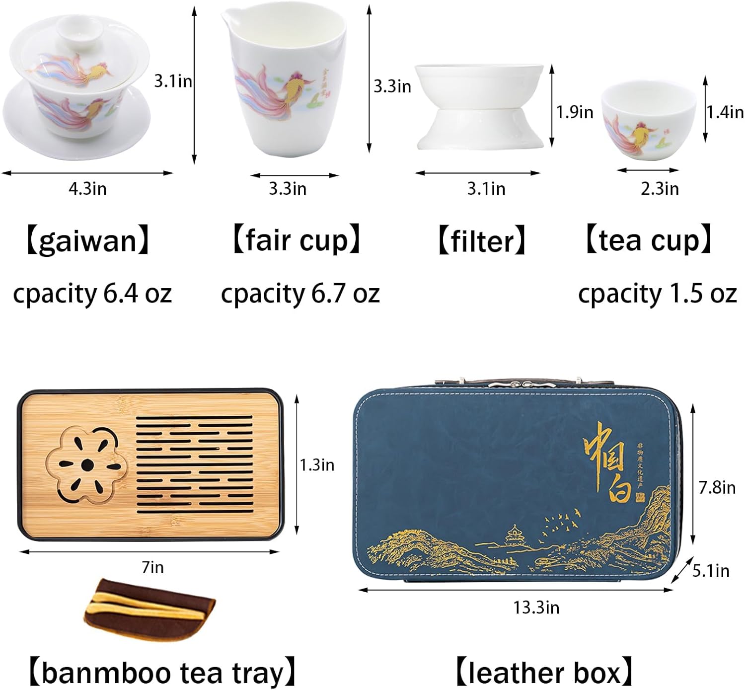 - 【Portable Travel Tea Set】Crafted for adults, this elegant Chinese tea set embodies the essence of traditional tea ceremonies while being compact and portable. Designed for travel bags or hand-carrying, it effortlessly brews oolong, black tea, green tea, and pu-er, making it perfect for camping, business trips, or enjoying authentic tea rituals anywhere