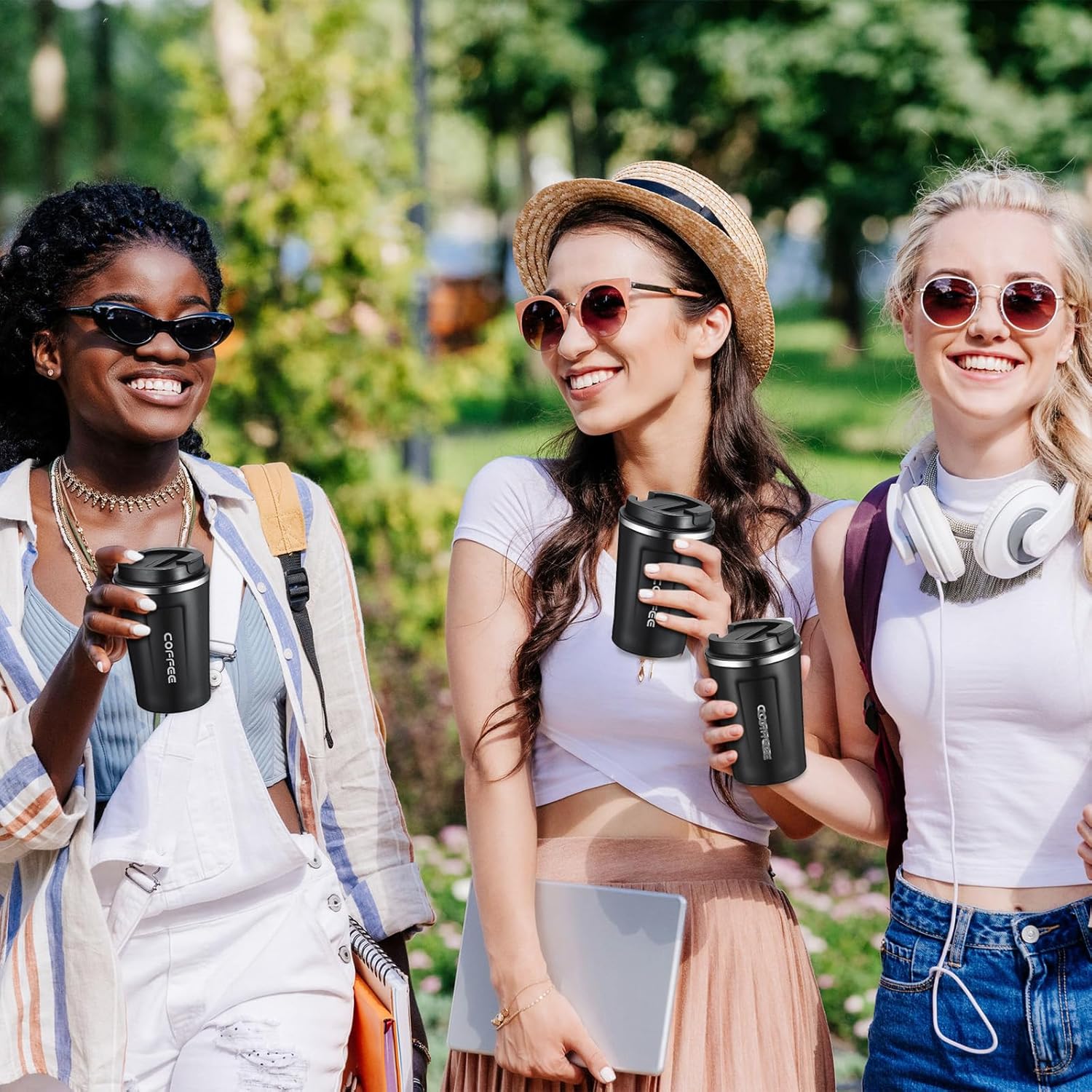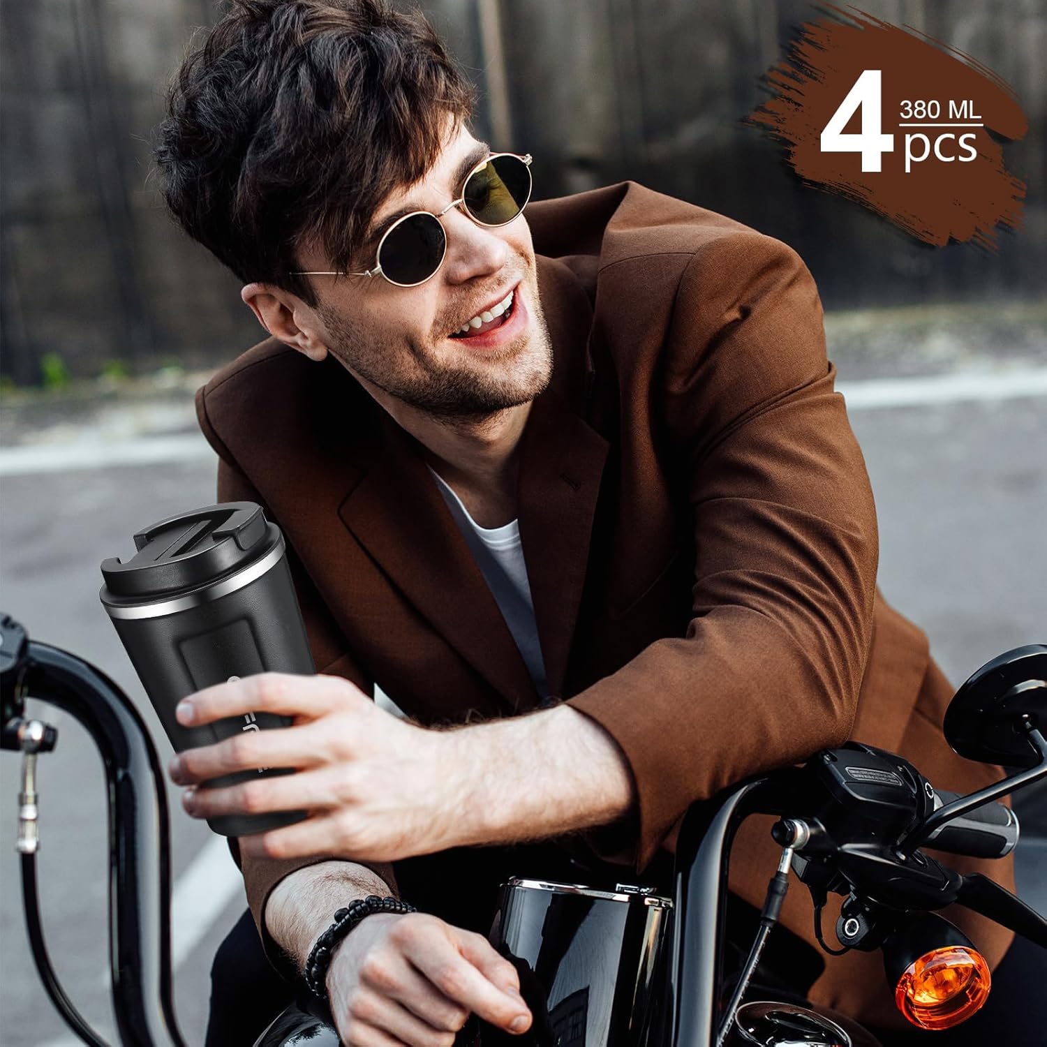 Sieral 4 Pcs 13 oz Travel Coffee Mug Insulated Reusable Coffee Cups with Leakproof Lid Stainless Steel Portable Tumbler for Keep Hot or Ice Milk Tea(Black)