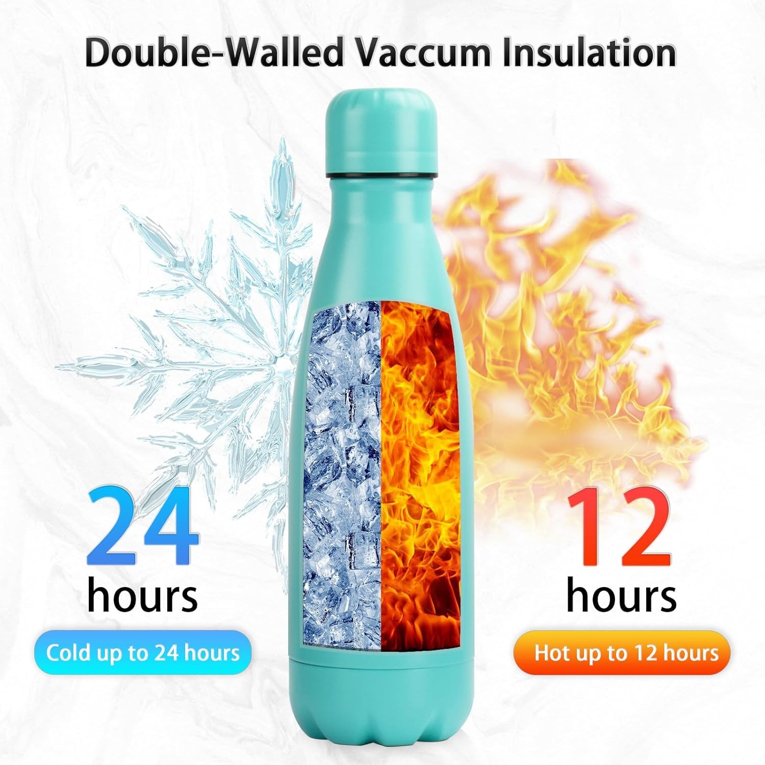 - COLORFUL & UNIQUE:Powder coating is the pinnacle of water bottle exteriors. Choose from a range of vibrant colors to match your personality and style. The Stainless Steel Metal water bottle is crafted with fashionable color powder coating, will not be scattered, discolored and difficult to scratch. Available in 9, 12,and 17-ounce sizes,making it easy to find the perfect size for your needs.