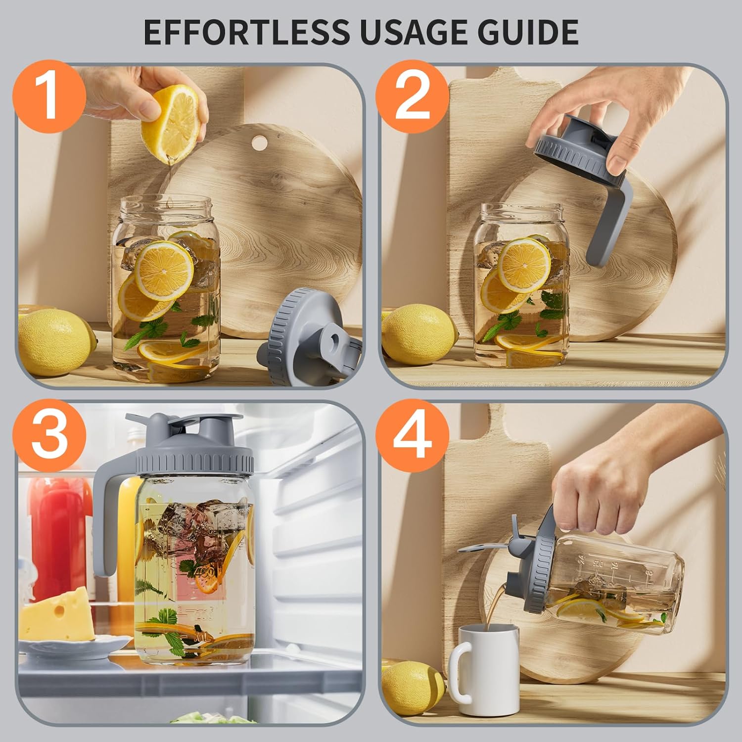 - 【Leak-Proof Freshness】 Our 32oz jug boasts a silicone-sealed pour spout lid, preserving your beverages' freshness and flavor while preventing unwanted odor mingling in the fridge. The secure flip-top lid makes pouring easy, offering a leak-proof solution.