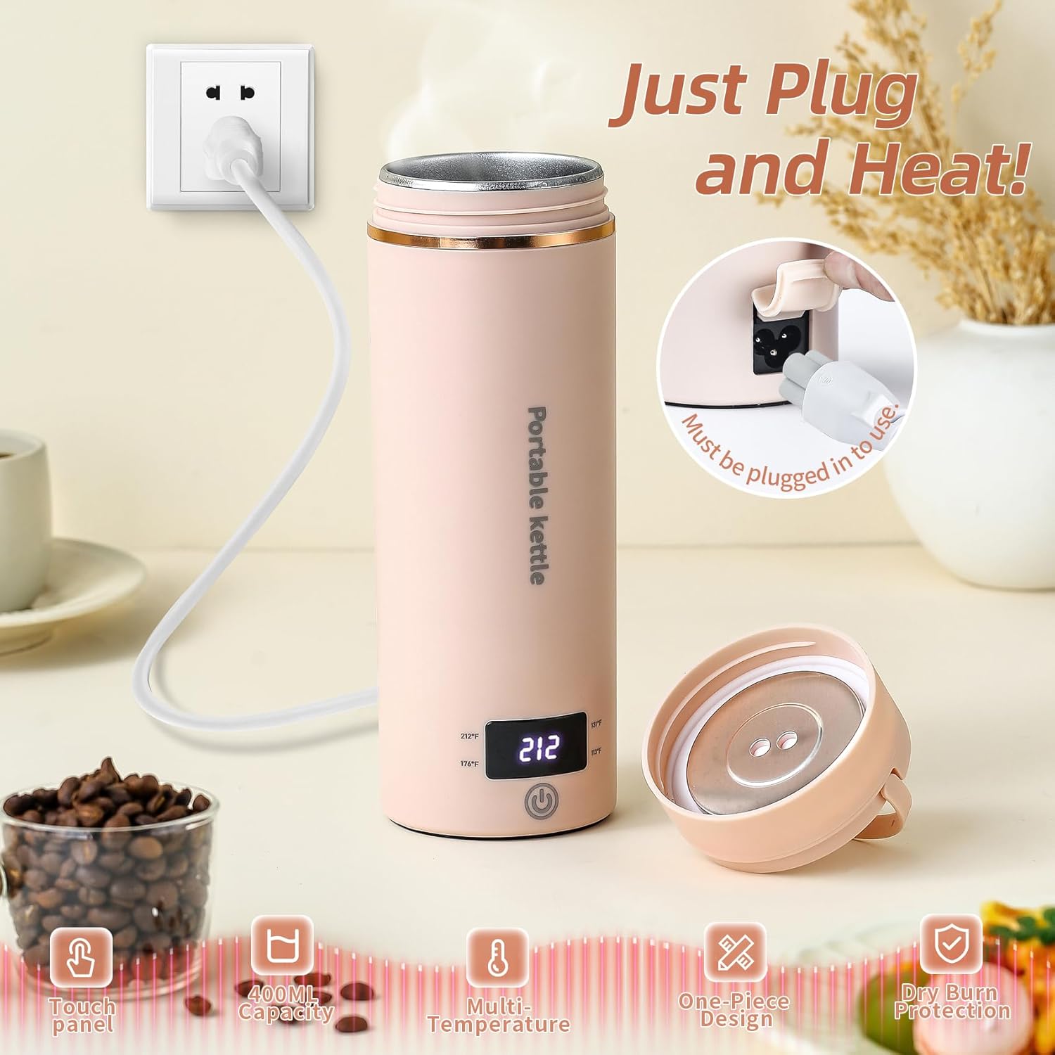 Travel Electric Kettle Portable Mini Kettle,Small Hot Water Boiler with 4 Temperature Settings,304 Stainless Steel,Fast Boiling Water with Auto Shut-Off and Boil Dry Protection (Pink, 400ml)