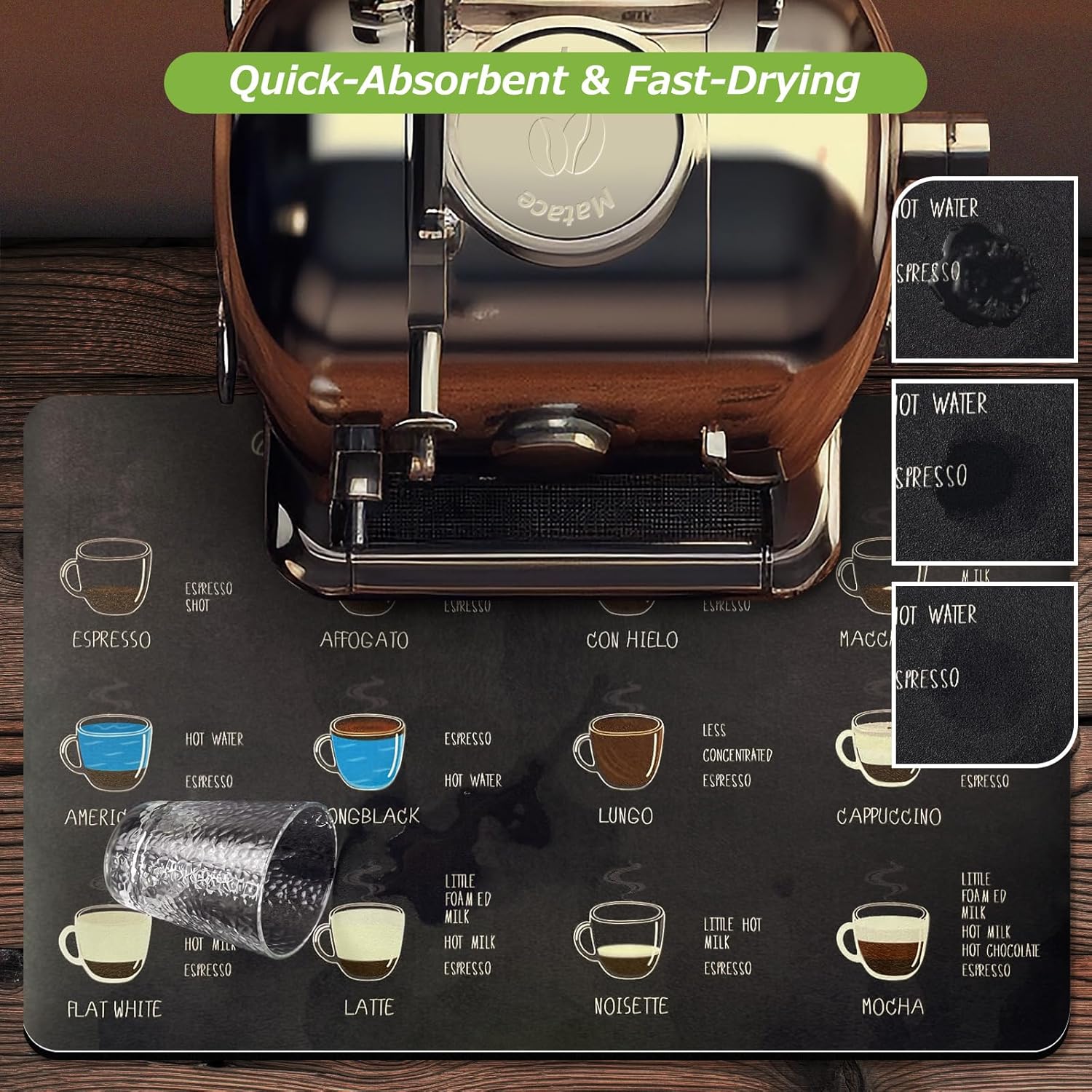 - 【Superior Stain Protection】 Crafted with an absorbent PU leather surface, the Matace Drying Mat quickly soaks up accidental spills and drips, keeping your kitchen counter clean and dry. Ideal for use as a coffee station mat or kitchen drying mat, it effectively protects your surfaces from everyday messes.