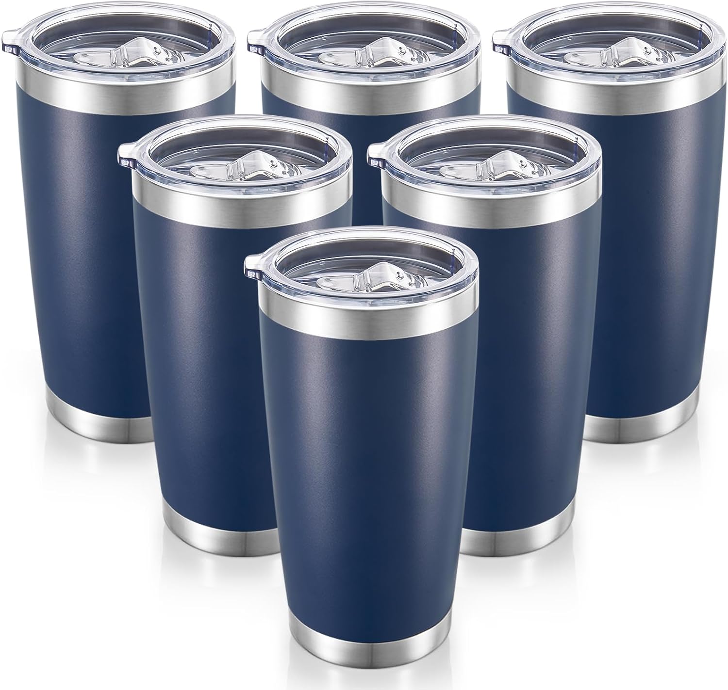 20 oz Tumblers Bulk Stainless Steel Tumbler with Lid Double Wall Vacuum Insulated Coffee Mug 20oz Powder Coated Cup for Hot and Cold Drinks, Navy, 6 pack