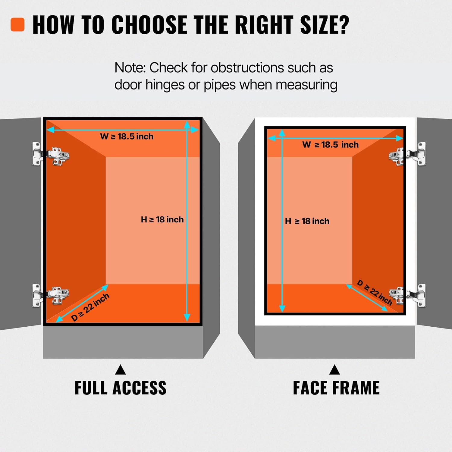 - Convenient and Practical Storage Solution: Product Size: 17"Wx21"Dx15"H; Cabinet Installation Size: 18.5"Wx22"Dx18"H. Note: Check for obstructions such as door hinges or pipes when measuring. Our 2-tier pull out cabinet shelf can create larger storage space in a small cabinet; you can use it in any cabinet. You can place pots and pans, seasoning jars, food jars, cleaning supplies, spice racks, and other items, significantly saving your storage space.