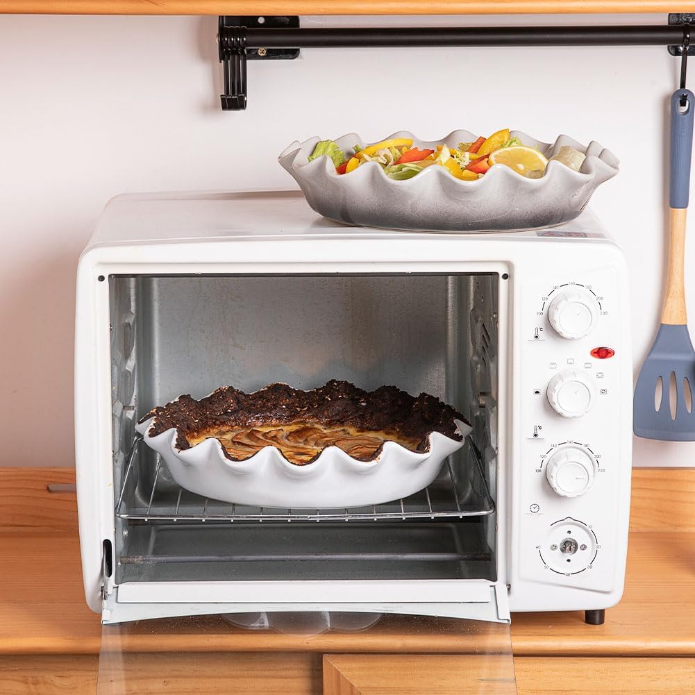Sweejar Ceramic 11.5 Inches Pie Pan for Baking, Deep and Fluted Porcelain Round Pie Dish, Non-Stick Pie Plate for Pumpkin Pie, Apple Pie, Pie Pots with Morden Farmhouse Design(White)