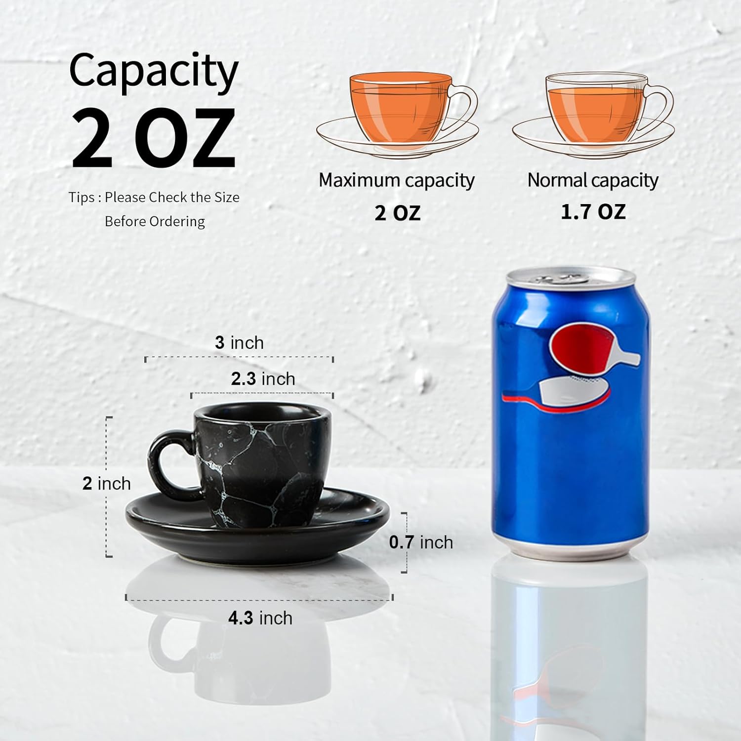 - 【Tips】We're super confident you'll love this espresso cups.Every piece was double checked one by one before we shipped them out. If any problems with the cups and saucers you received, please be free to contact us,our service team will provide the best solution within 24 hours.