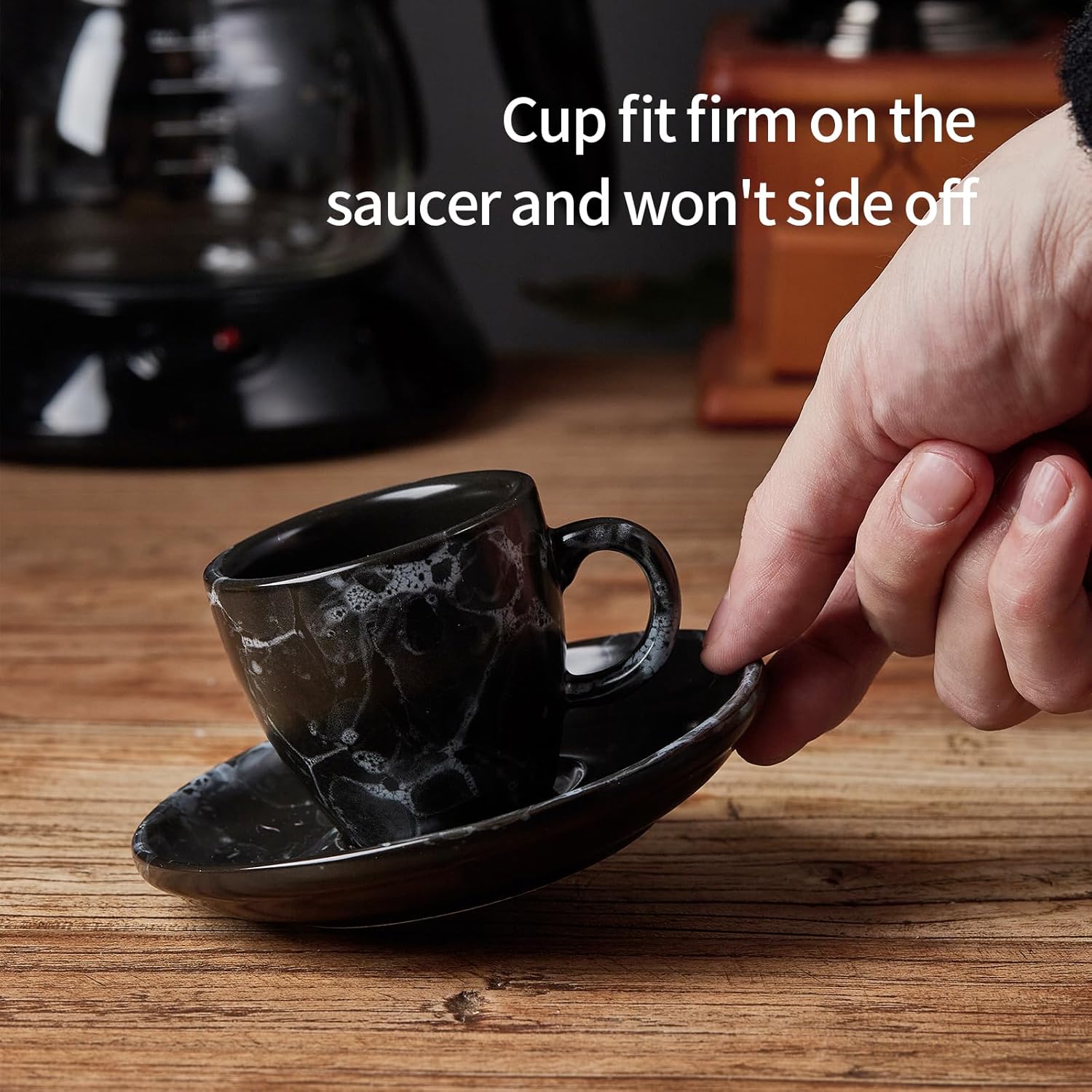 - 【The Elegant Gift】The marble porcelain mini coffee cups with saucers were beautifully and safely Gift box packed.It is a decent gift for your friends and family on Housewarming,Wedding party,Christmas.Any cafes, restaurants, and exquisite decorations are inseparable from it.