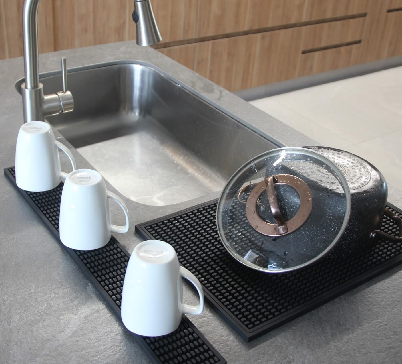 - VERSATILE USE: Ideal for bars and restaurants, our Rail Bar Mats are a solution to maintain the hygiene of your cocktail shakers and other bar tools. Designed to serve cocktails and drinks, helps reduce noise from glassware and bottles coming into contact with the bar surface. It also can be used as a glass drying mat.