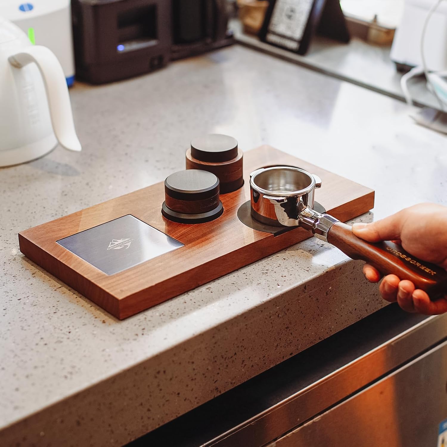 54mm Espresso Distributor | Gravity Adaptive Distribution Tools Fits 54mm Breville Espresso Portafilter | Self Leveling Distributor | Stainless Steel & Walnut | Espresso Machine Accessories
