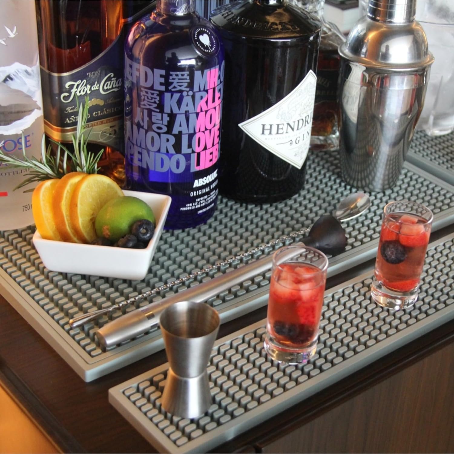 - VERSATILE USE: Our bar mat for home bar are a solution to maintain the hygiene of your cocktail shakers and other bar or coffee tools. Ideal for bars and restaurants, they also can be used as a coffee bar mat, drink bar mat, barber mat, drying glass mat, bathroom toiletry holder, bedside glass tray, makeup holder and more.