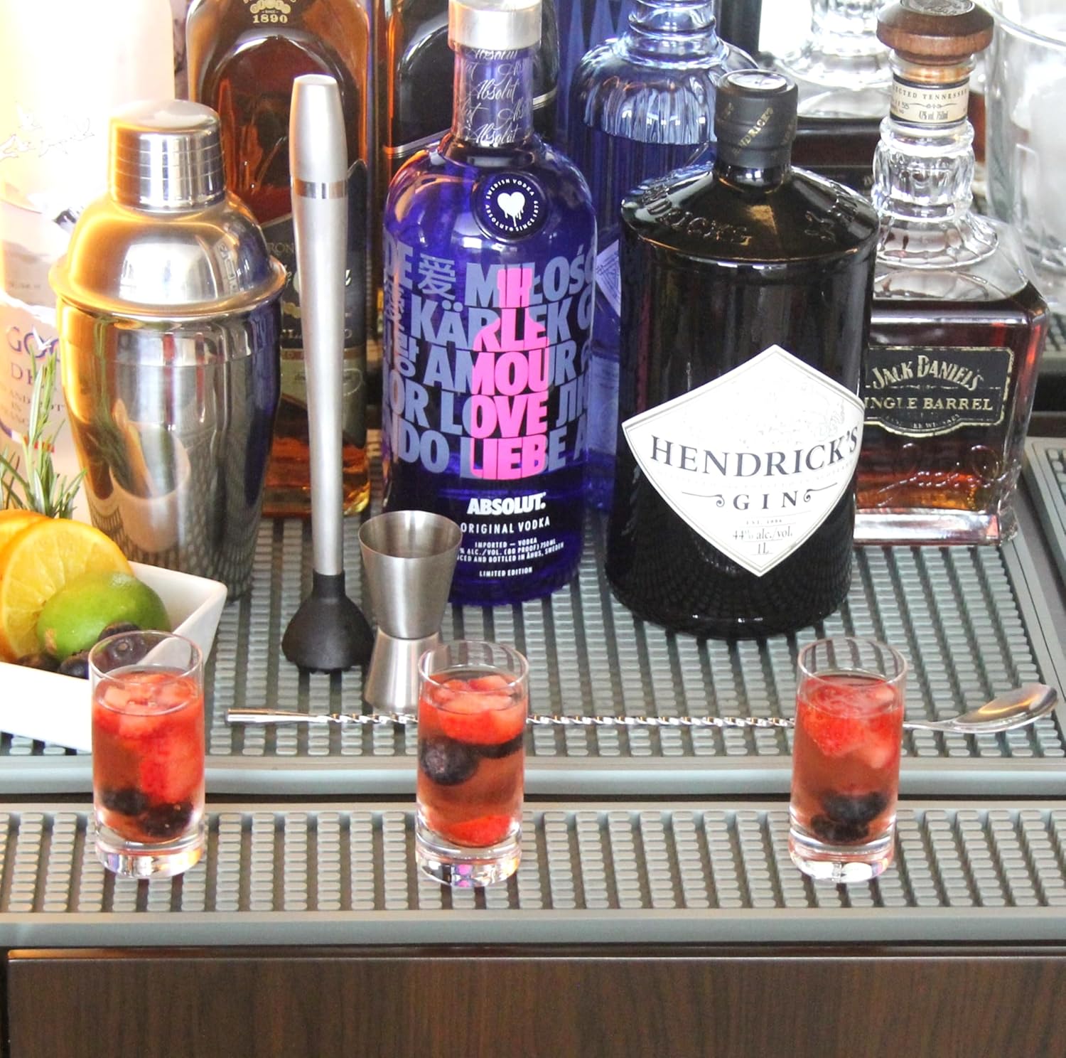 - VERSATILE USE: Ideal for bars and restaurants, our Rail Bar Mats are a solution to maintain the hygiene of your cocktail shakers and other bar tools. Designed to serve cocktails and drinks, helps reduce noise from glassware and bottles coming into contact with the bar surface. It also can be used as a glass drying mat.