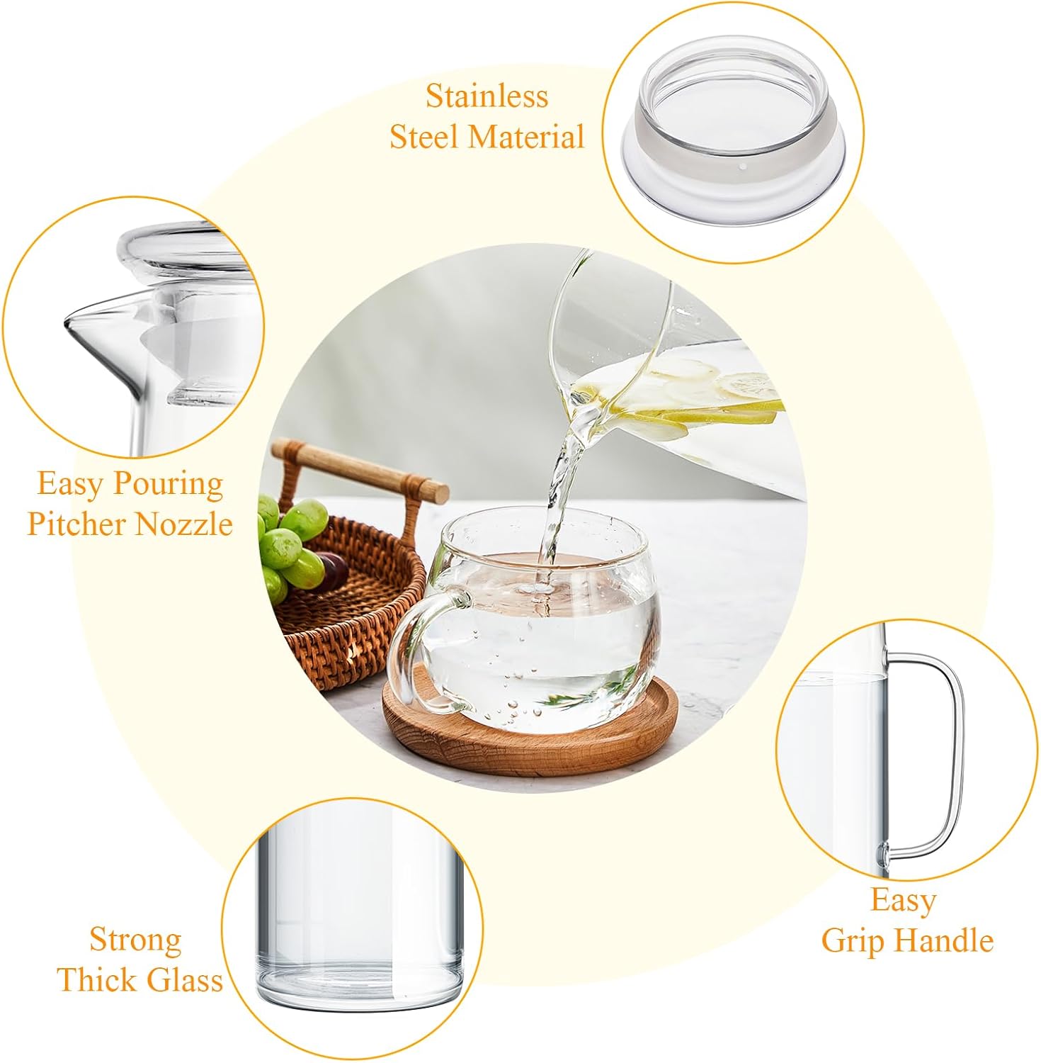 - Durable and Safe: the water pitcher is mainly made of borosilicate glass, and the lid is mainly made of stainless steel and glass, reliable and safe, washable and reusable, hard to rust, which can serve you for a long time