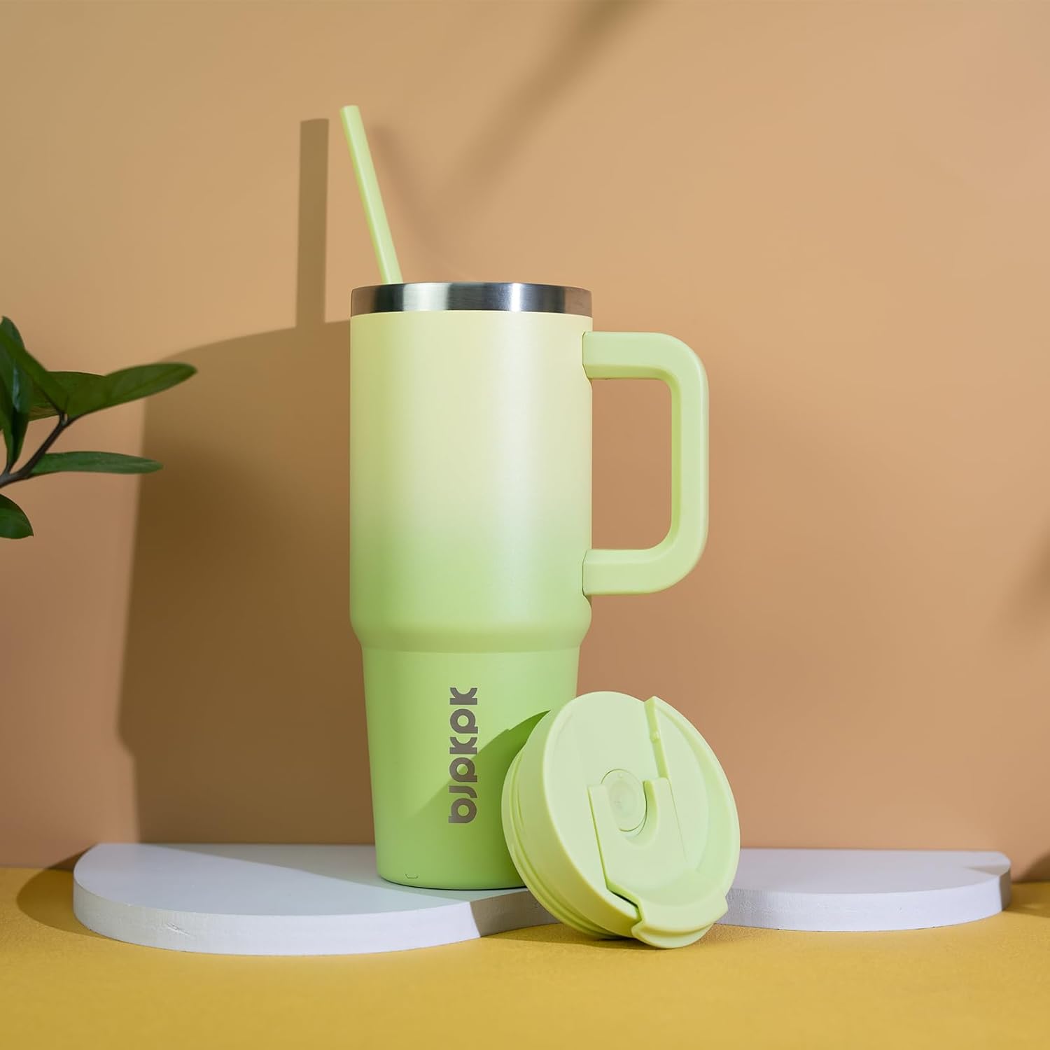 - Cupholder Friendly Travel Mugs With Handle: The Insulated Cups Has a Narrow Bottom And A Wide Mouth Fits Most Cup Holder In Car, With A Comfortable Ergonomic Silicone Handle And Two Reusable Straw To Use More Portable, You Can Stay Sipping From Your Essential Hydration Companion, Even On Your Busiest Days
