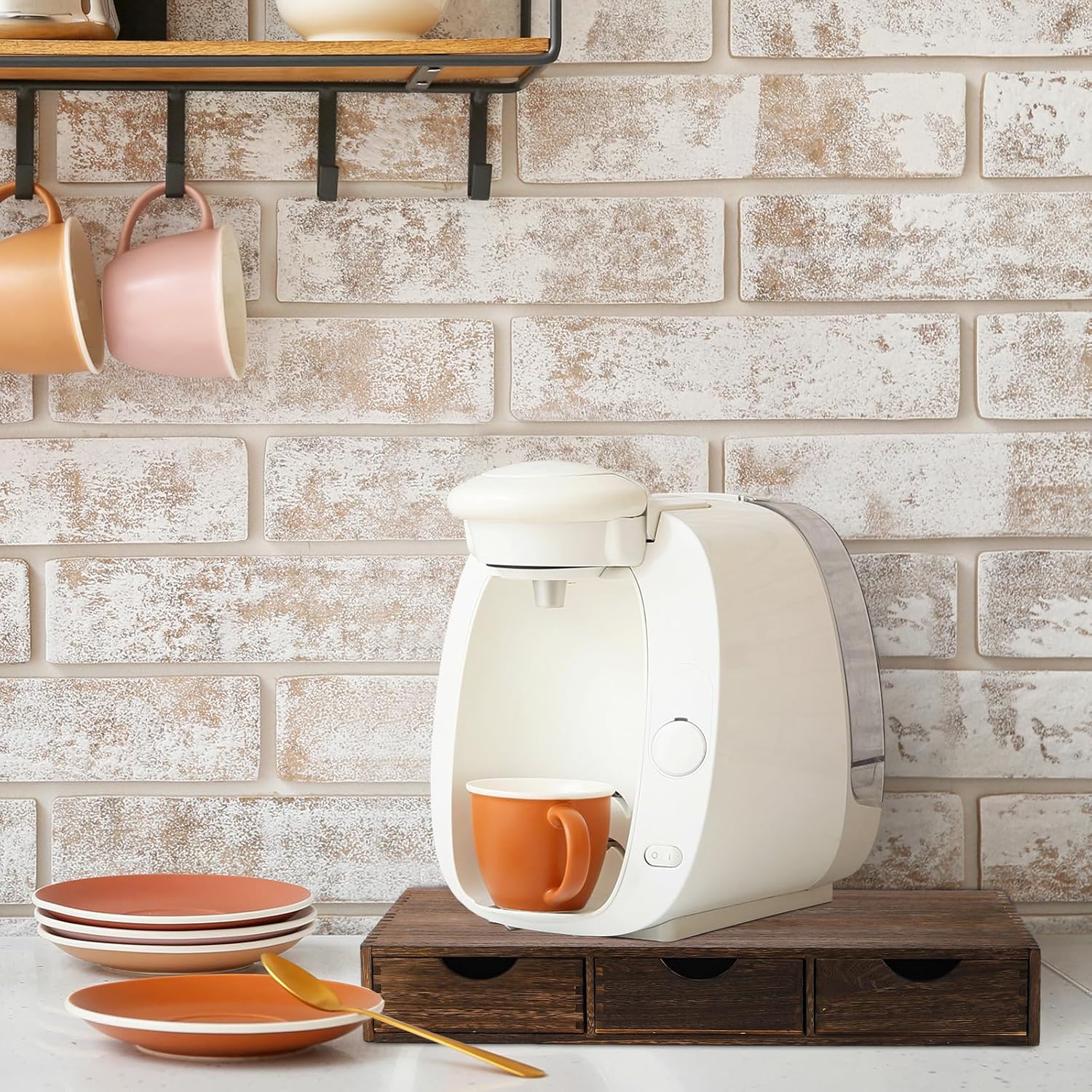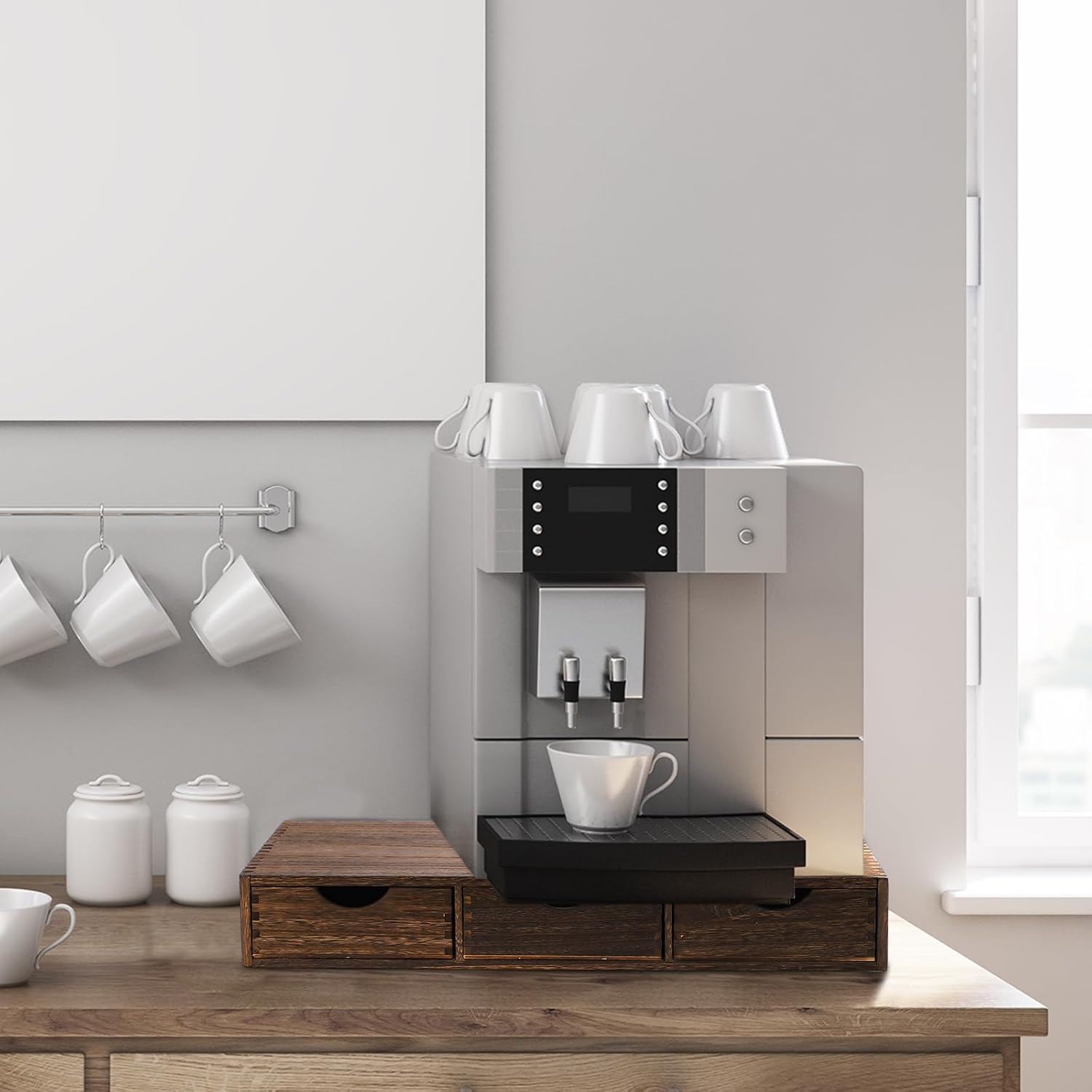 Suzile Coffee Pods Storage Holder Cabinet Vintage Countertop Storage Drawers Wooden Cup Organizer Under Brewe for Home Office Accessories(3 Drawer)