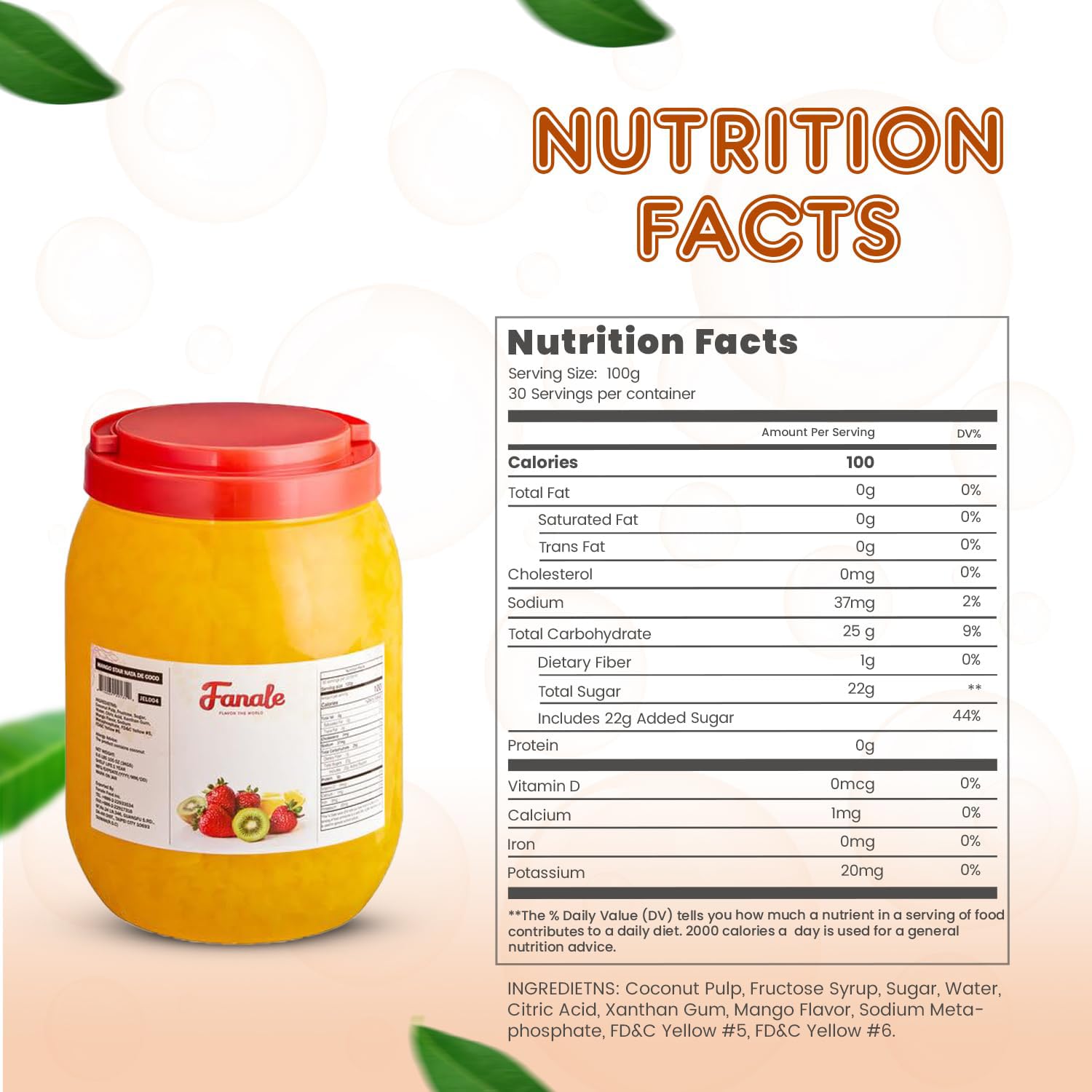 - ๐๐ฐ๐๐๐ญ ๐๐ง๐ ๐๐ฑ๐จ๐ญ๐ข๐ ๐ ๐ฅ๐๐ฏ๐จ๐ซ: Each Fanale coconut jelly boba tea variety is infused with sweet and exotic flavors that complement a range of recipes. This nata de coco jelly topping includes strawberry, lychee, blueberry, mango, sakura, green apple, coconut, Konjac, and coffee flavors, adding a distinct and delightful twist to your creations.