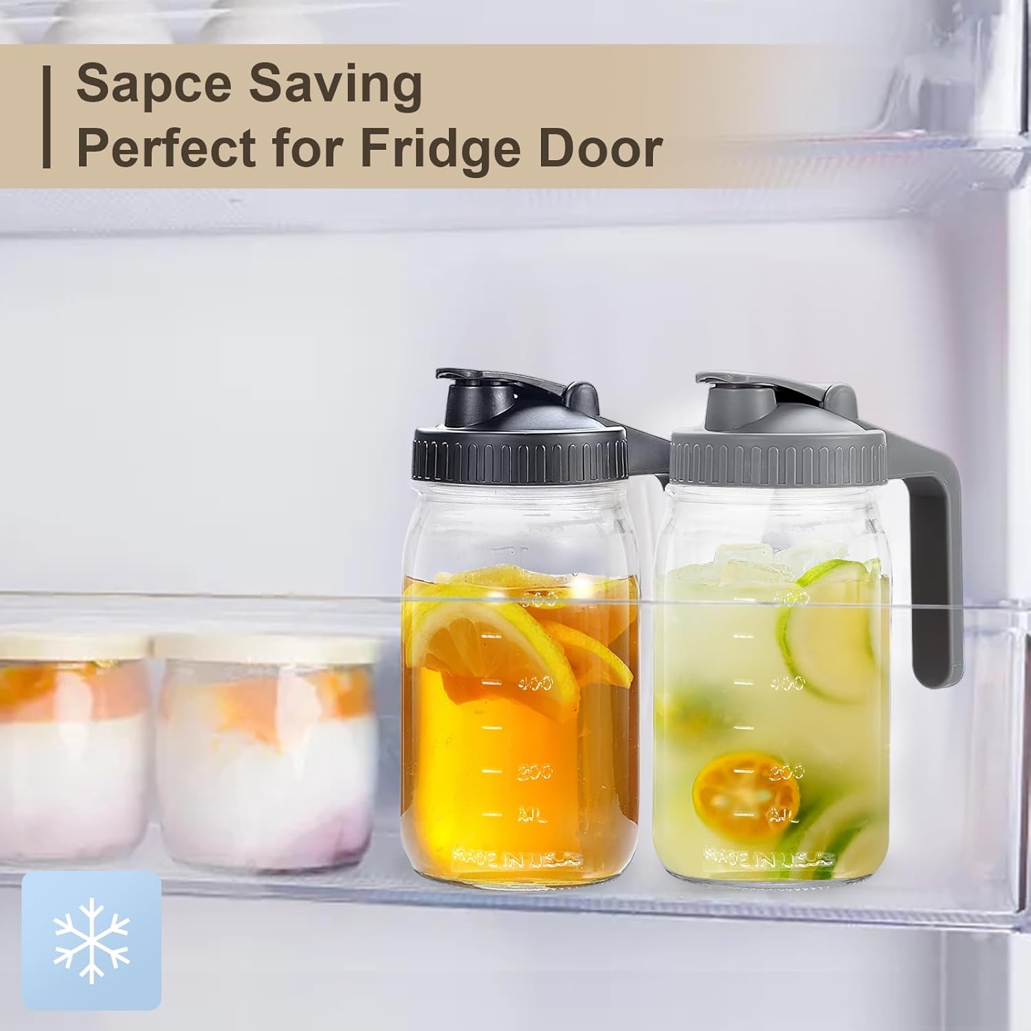 Creamer Pitcher Jar with Lid - 2 Pack No Leak 32oz Airtight Mason Jar with Pour Spout Lid, Classic Wide Mouth Jug Easy to Clean, Ideal for Coffee, Breastmilk, Iced & Sun Tea, Juices