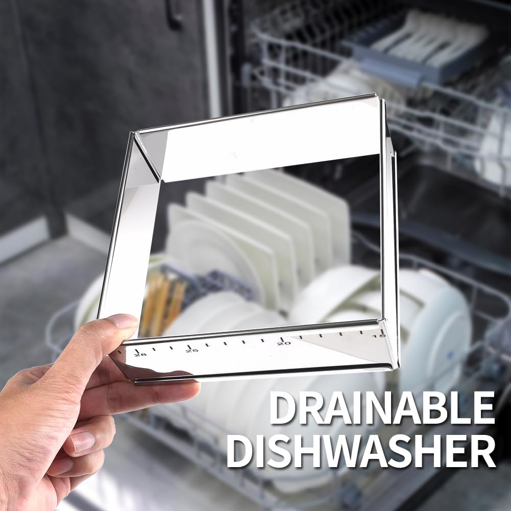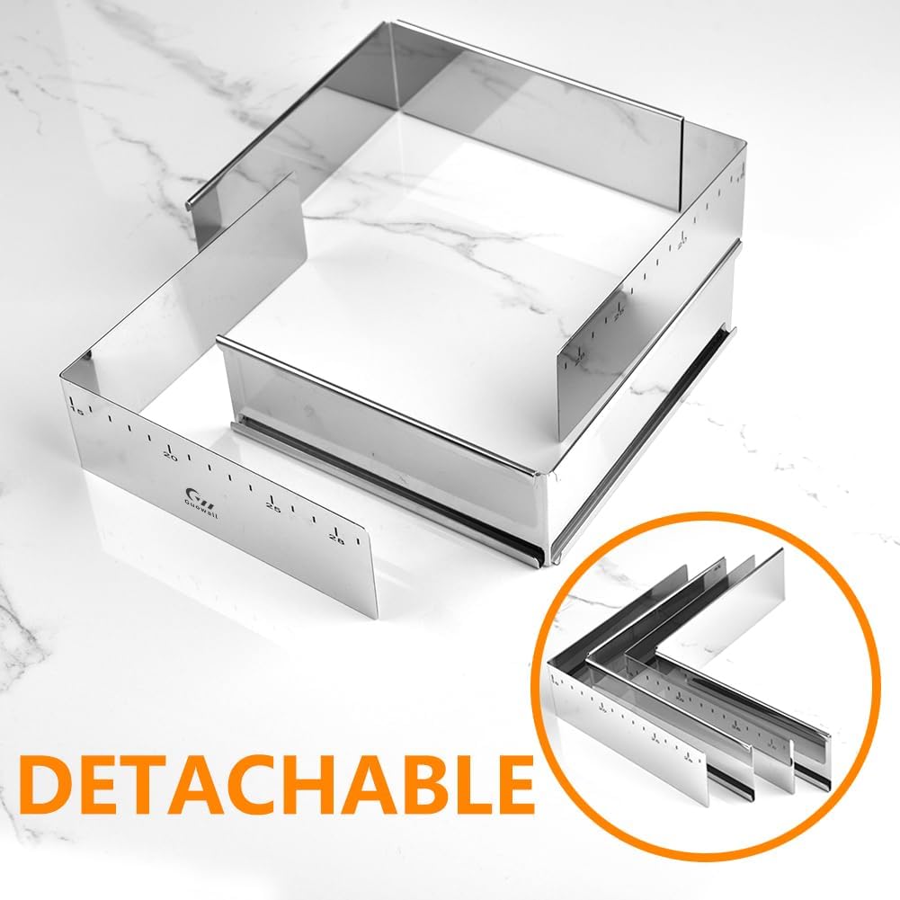 Guowall Stainless Steel Extensible Cake Ring Mold Adjustable Square Shaped Mousse Ring Detachable Nonstick Cake Cutter for DIY Baking - 6in