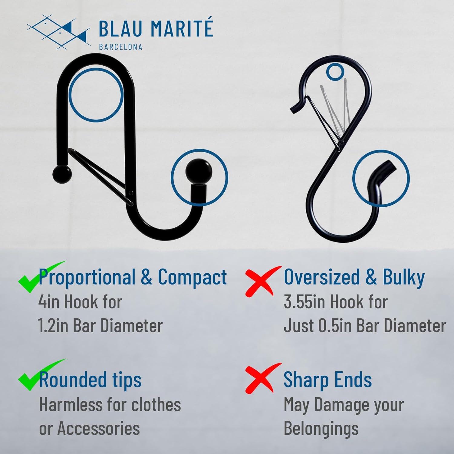 6 S-Shaped Hooks with Anti-Fall System. Anti Drop S-Shaped Hook with Safety Buckle to Prevent Falls. Heavy Duty. (Black, 4in Long (Diameter Rod<1.2in))