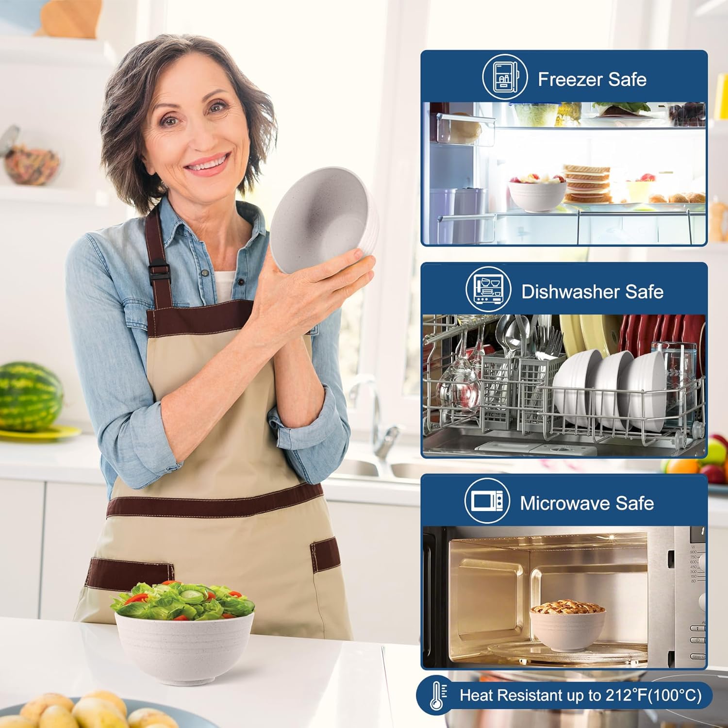HOTEC Unbreakable Wheat Straw Cereal Bowls - Microwave & Dishwasher Safe Soup and Salad Bowls BPA Free, Set of 8, 26oz, White