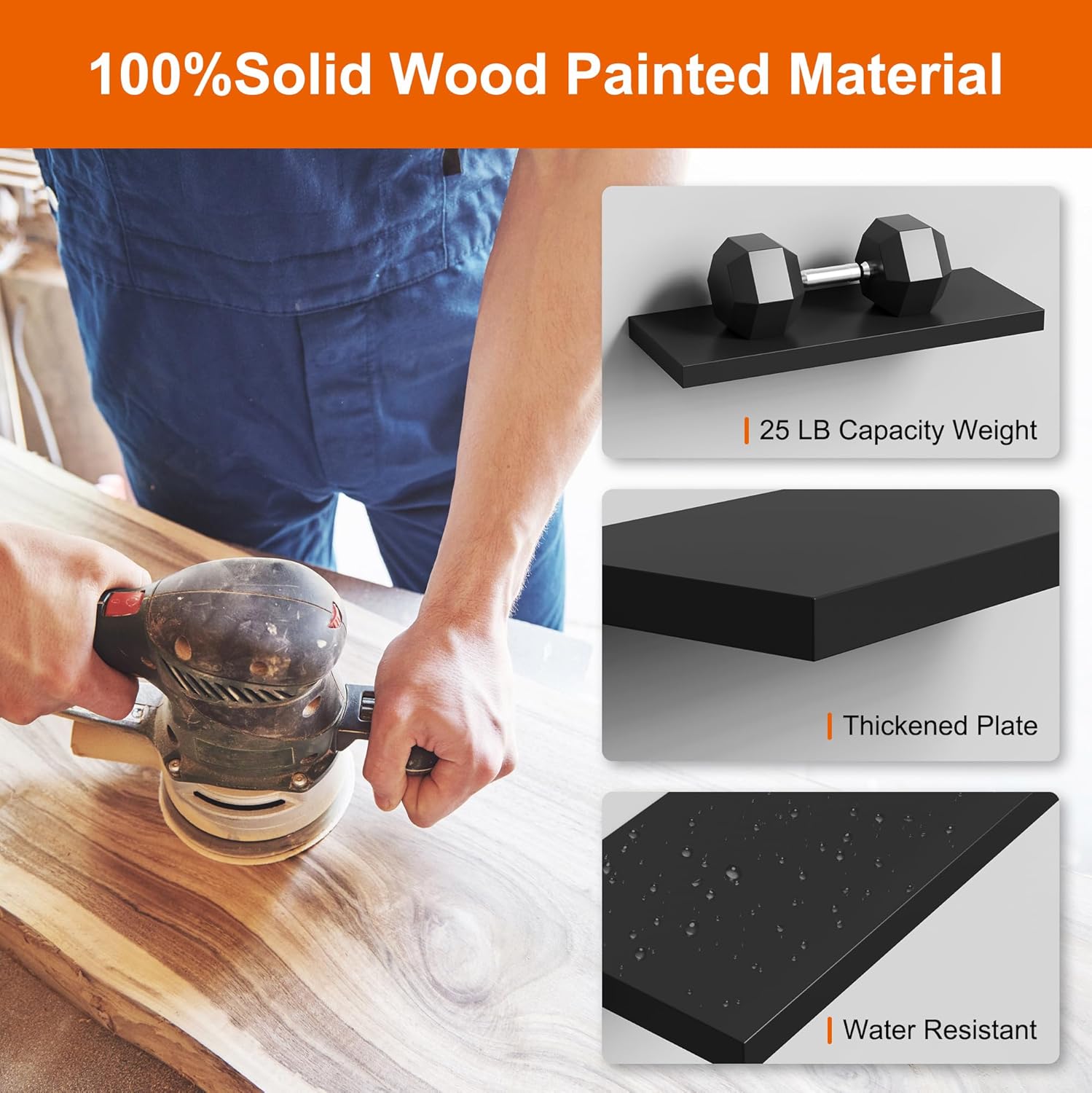 - 【Modern Concise Design】Our black floating shelves are designed with modern simplicity. It has streamlined look to bring modern style and vintage atmosphere to the home. Our wood floating shelves for wall is a set of 3 wall mounted shelves. Our rustic wood shelves can give us plenty of space for creativity, we can choose a line, a ladder shape, or a symmetric way. Let our floating shelf wood more suitable to the home decor and bring a better visual experience.