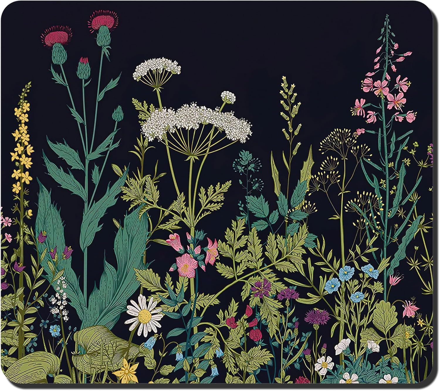 Rnivvi Dish Drying Mat for Kitchen Counter, 16 x 18" Cute Flower Theme Absorbent Heat Resistant Drying Pad with Non-slip Rubber, Coffee Bar Mats for Dish Rack Kitchen Decor Accessories, Black